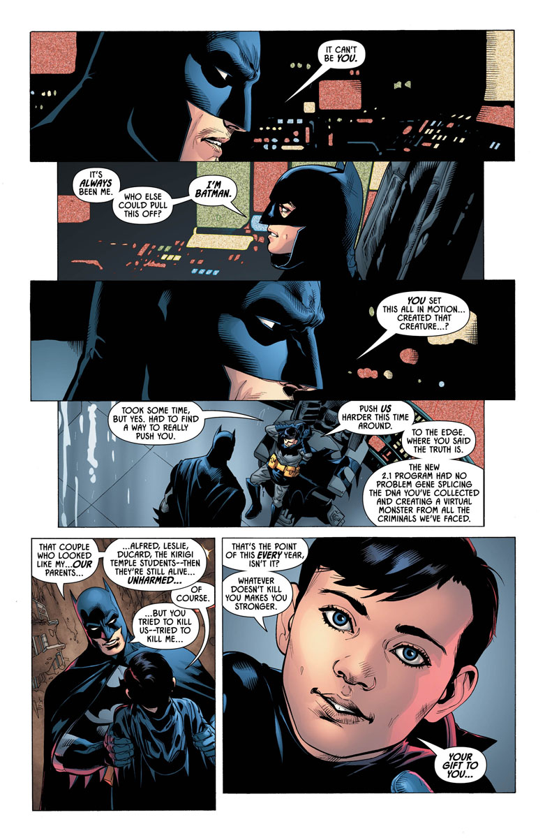 The truth behind the gauntlet Batman has been forced to run—a violent odyssey that endangered the lives of everyone who made him who he is—is revealed at last…and the mastermind working to unmake the Batman must be seen to be believed! Is there a goal here beyond destruction? Will Batman emerge stronger…or with a mortal wound at the exact moment that his most dangerous challenge yet is on the horizon in next month’s DETECTIVE COMICS #1000?