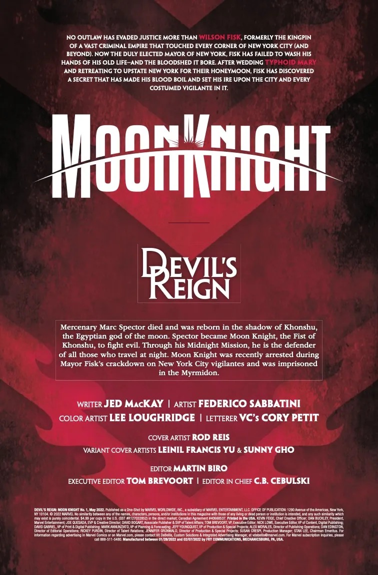 Devil’s Reign: Moon Knight #1 goes on sale on March 9th, priced $4.99.