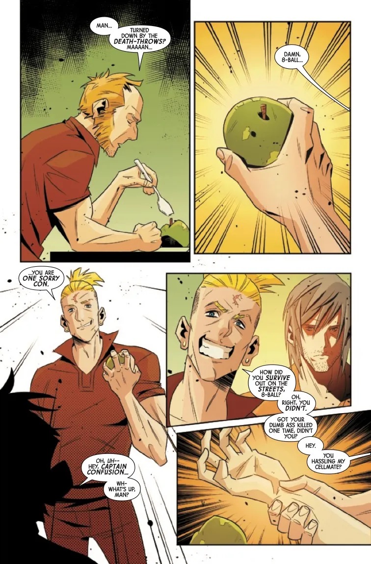 After being arrested by the Thunderbolts as part of WILSON FISK’S crackdown on costumed heroes, MOON KNIGHT is now a prisoner in the high-tech Myrmidon, surrounded by hostile guards and many of the very criminals he helped put away, Marc Spector must fight for his survival. But Moon Knight’s quest for justice doesn’t end just because of a little light incarceration…