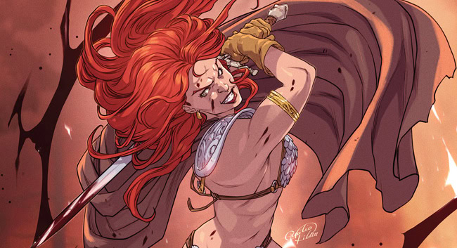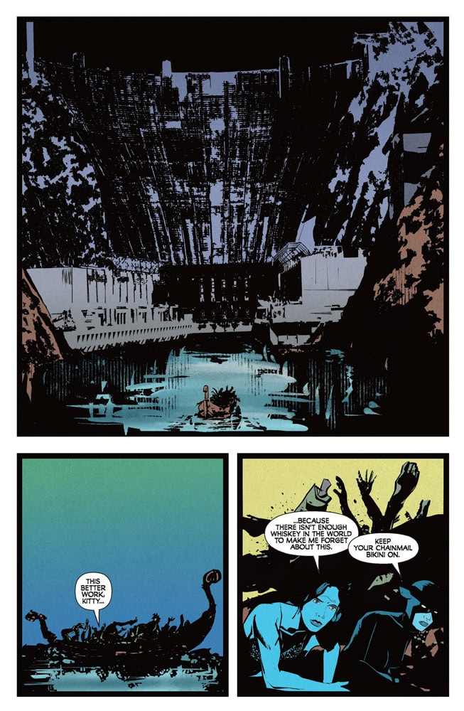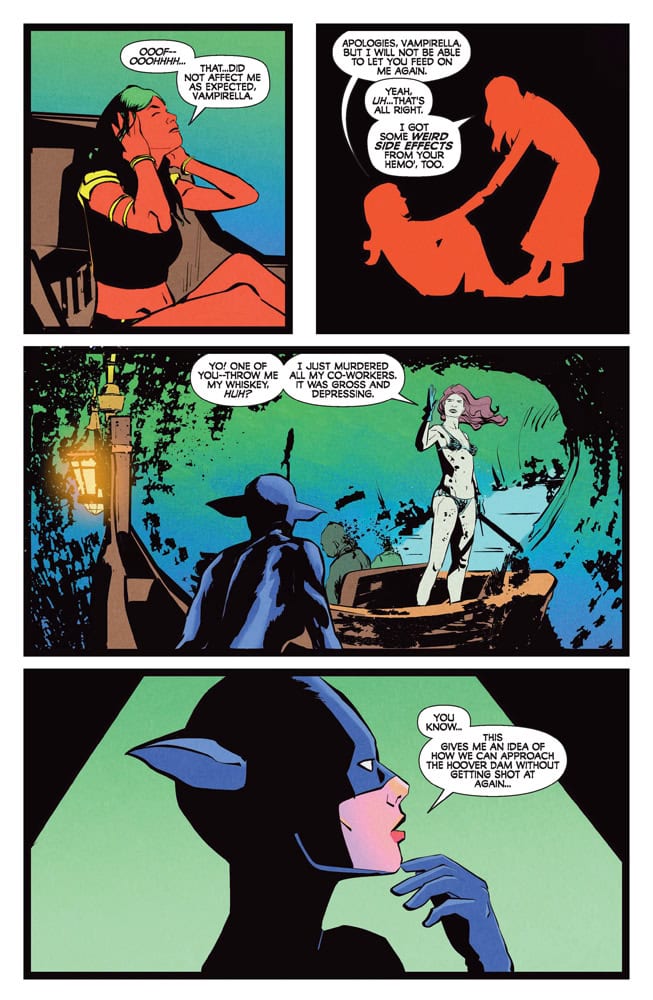 IT’S A MARTIAN STANDOFF! With Sonja leading the way through the sewers of Sin City, Purgatori’s strike team of Miss Fury, Vampirella, and Dejah Thoris are poised to capture the rogue Kaldanian scientist Taak and force him to divulge the cure for the Deadmen plague. But things take a turn for the traitorous when Vampi corners Taak in his Hoover Dam lair and gets a telepathic earful about both his and Dejah’s true intentions!