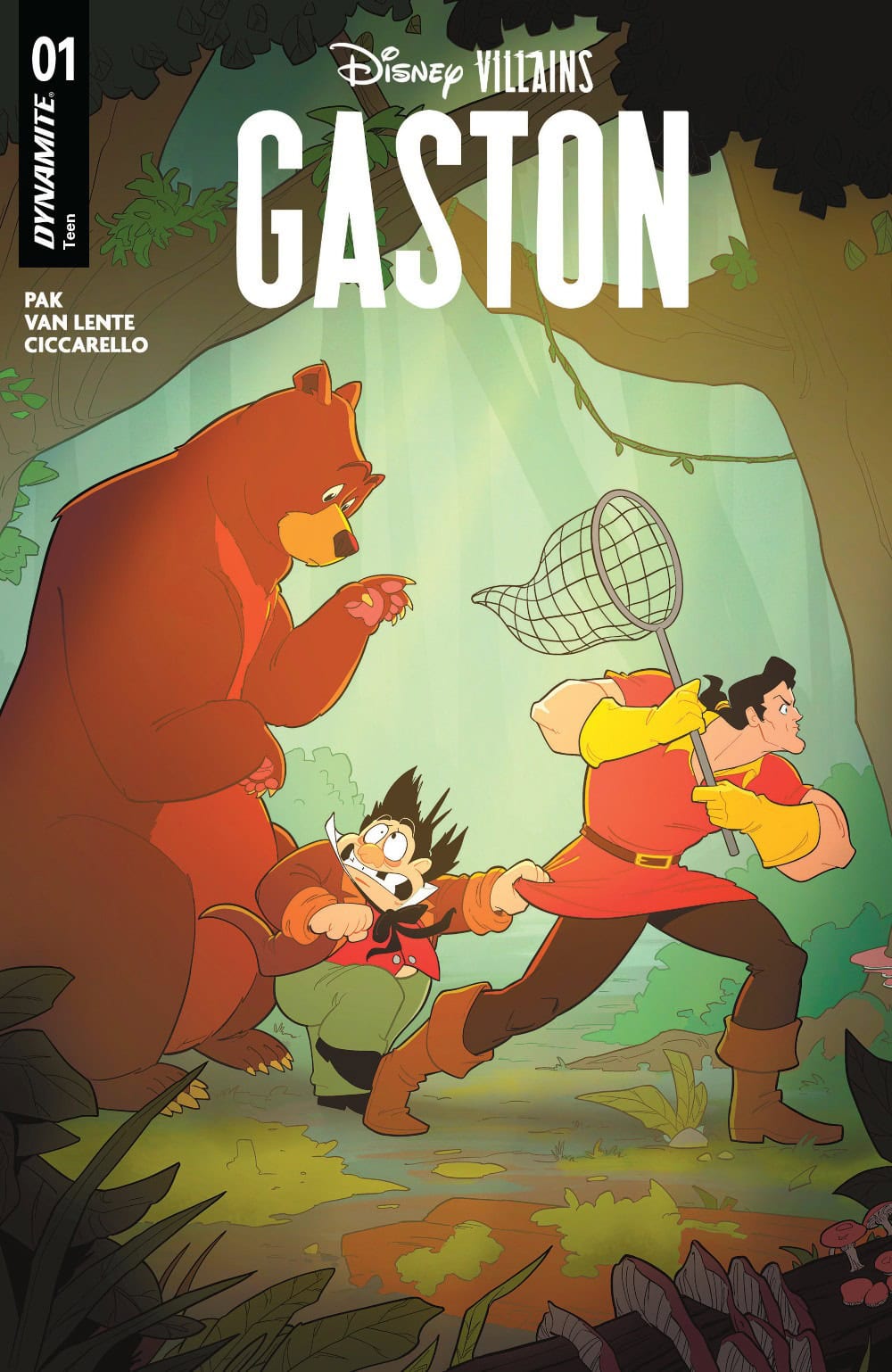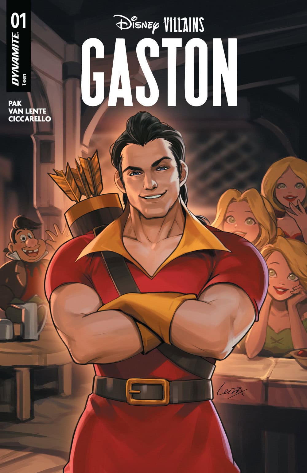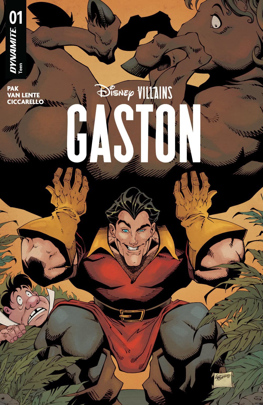 Highly animated authors Greg Pak (Lilo & Stitch) and Fred Van Lente (Conan the Avenger) join forces with artiste extraordinaire Milena Ciccarello to finally bring readers the tale that they have surely been clamoring for with Disney Villains: Gaston – featuring appropriately adoring covers courtesy of Ciccarello, Lesley “Leirix” Li, Ted Brandt & Ro Stein, and Will Robson.
