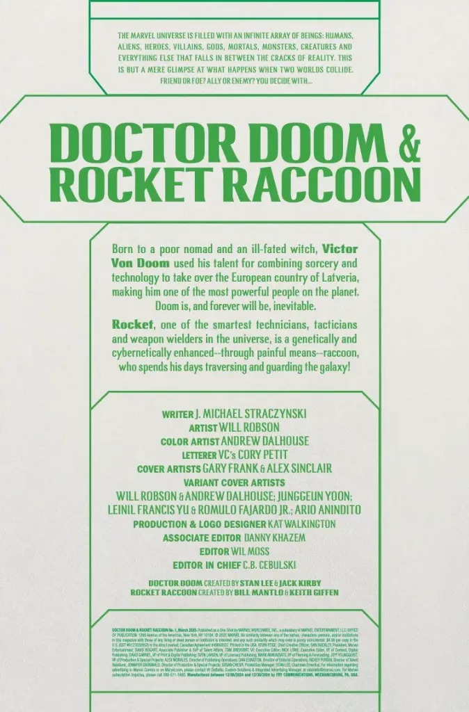 Marvel Comics releases Doctor Doom & Rocket Raccoon #1 from J. Michael Straczynski on Wednesday, and you can take a look at the official preview of the unlikely team-up below…