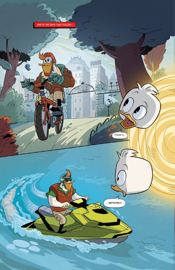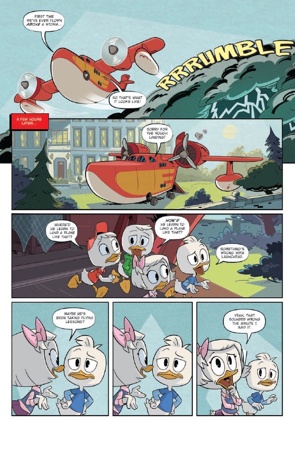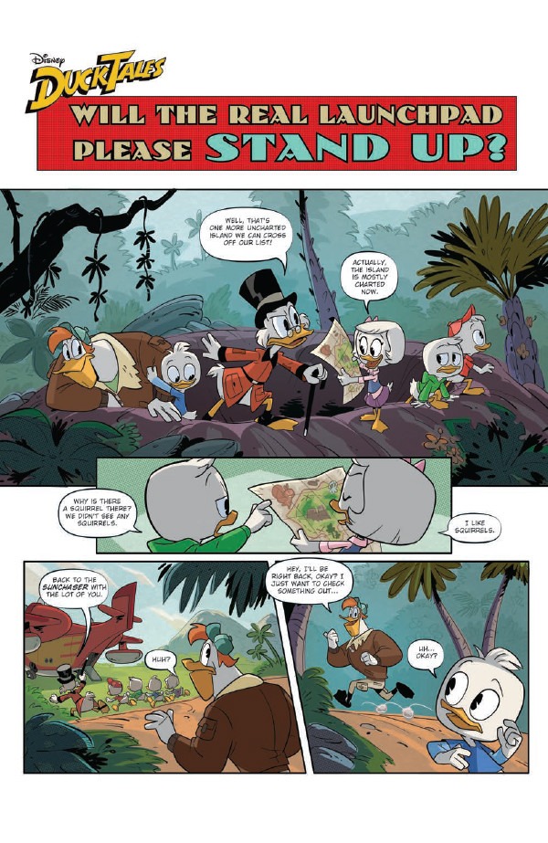 After successfully charting an uncharted island, Uncle Scrooge, Launchpad, Huey, Dewey, Louie, and Webby head back to McDuck Manor. But the Launchpad that leaves the island with them is different than the one that arrived, and it’s really upsetting Dewey! As Launchpad acts more and more out of character, Dewey is determined to get to the bottom of things before they get too out of hand! Find out if he succeeds in “Will the Real Launchpad Please Stand Up?”