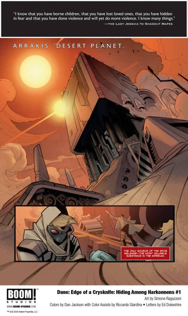 Dune: Edge of a Crysknife: Hiding Among the Harkonnens #1 is set for release on Wednesday, July 2nd 2025.