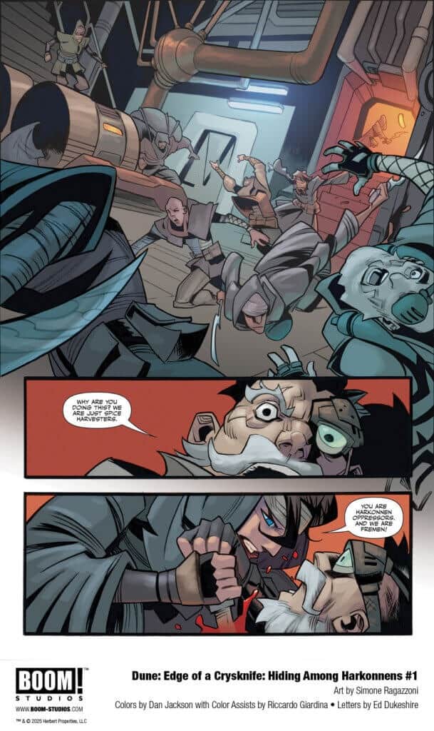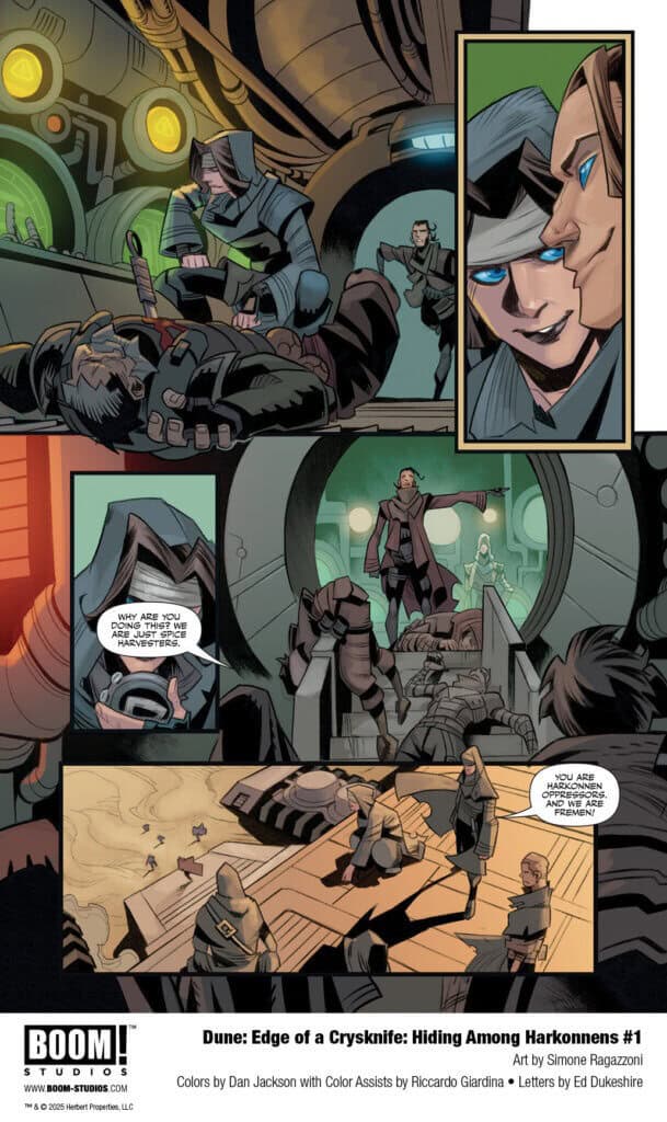 Boom! Studios takes us back to Arrakis this week with the release of the one shot comic Dune: Edge of a Crysknife: Hiding Among the Harkonnens, and you can get yourself an early sneak peek with the official preview below…