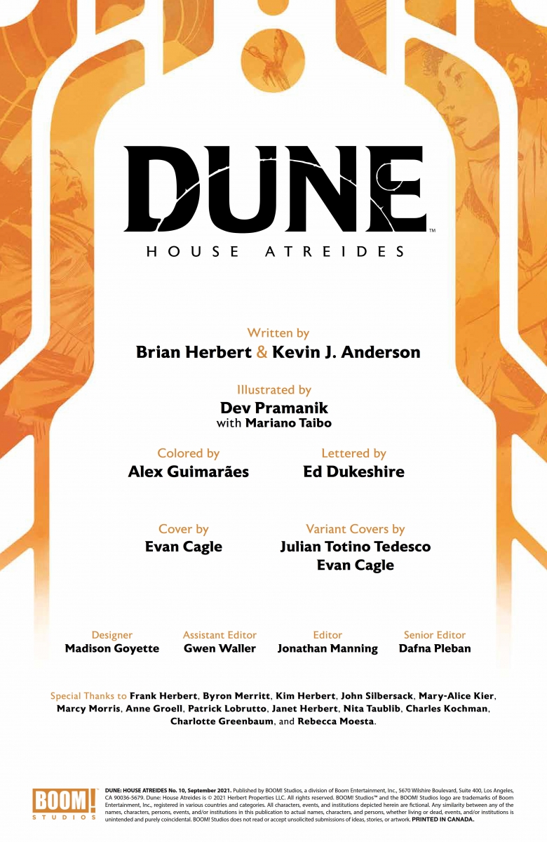Dune: House Atreides #10 goes on sale on Spetember 22nd, priced $3.99.