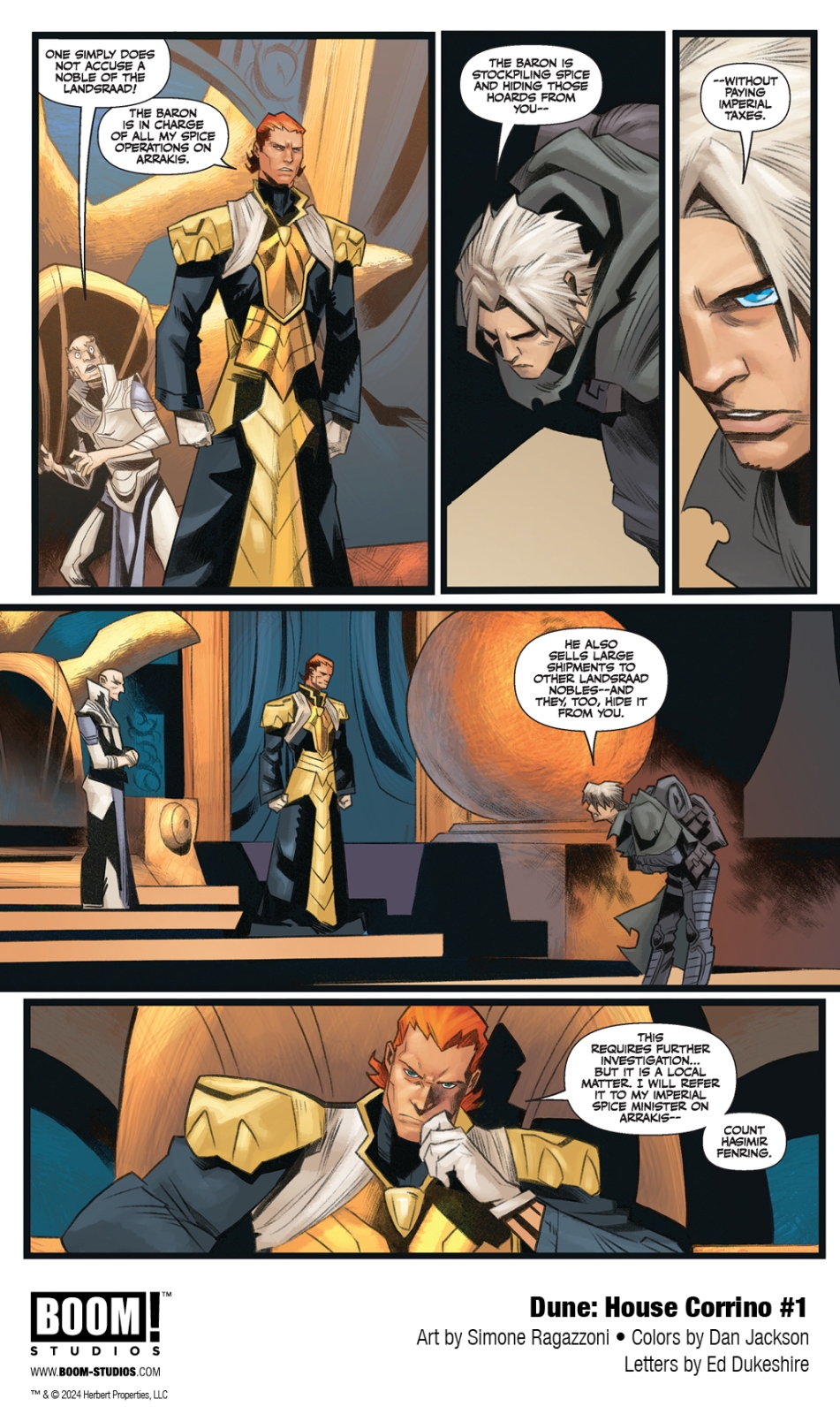 Boom! Studios launches its new series Dune: House Corrino next week, and we have the official preview of the first issue for you below; check it out…