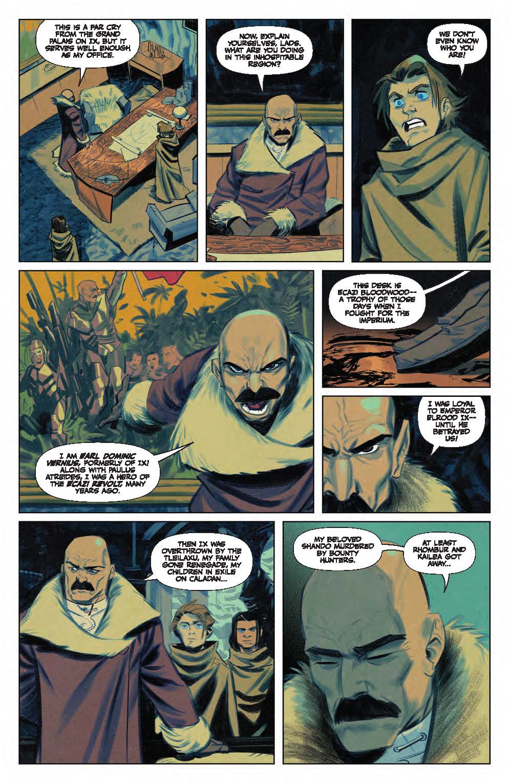 Chaos ensues across planets as Gurney stages a tense rescue mission, while Liet and Warrick are forced to make a difficult choice, and Leto regrets putting the young Victor in danger’s way on Caladan. Meanwhile, the recapture of Ix turns explosive, and the Bene Gesserit prepare for the presentation of a fateful person in Leto’s life to come…