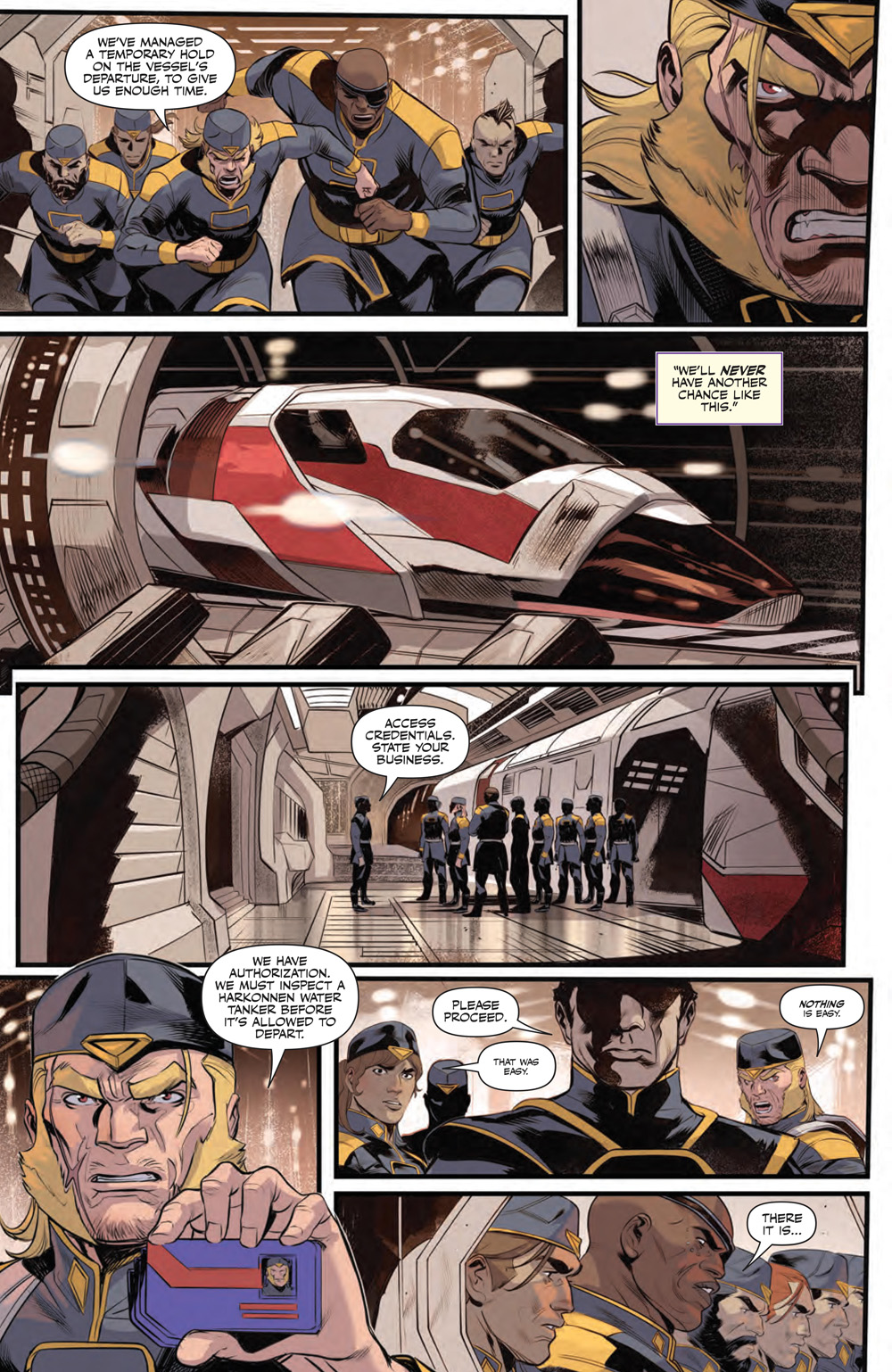 In the penultimate issue of the exciting expansion to the lore of Dune, Gurney and the smugglers have the opportunity to deal a crucial blow to their bitter enemies. The problem is, will they be able to escape, or face the deadly consequences of failure?