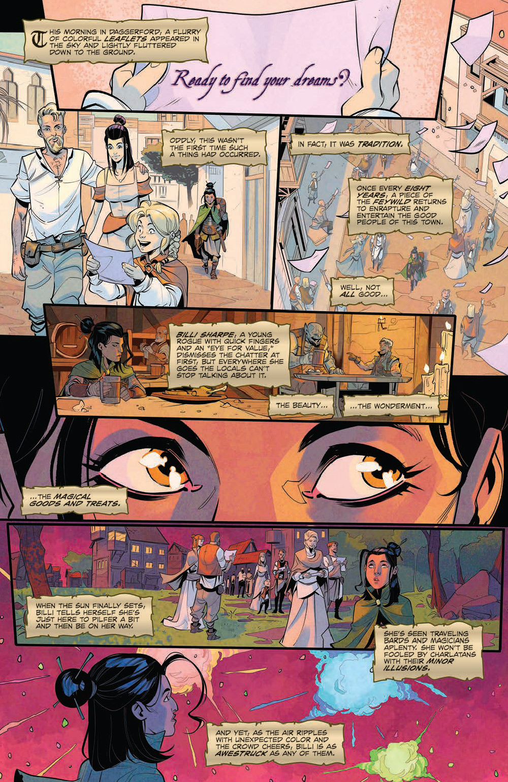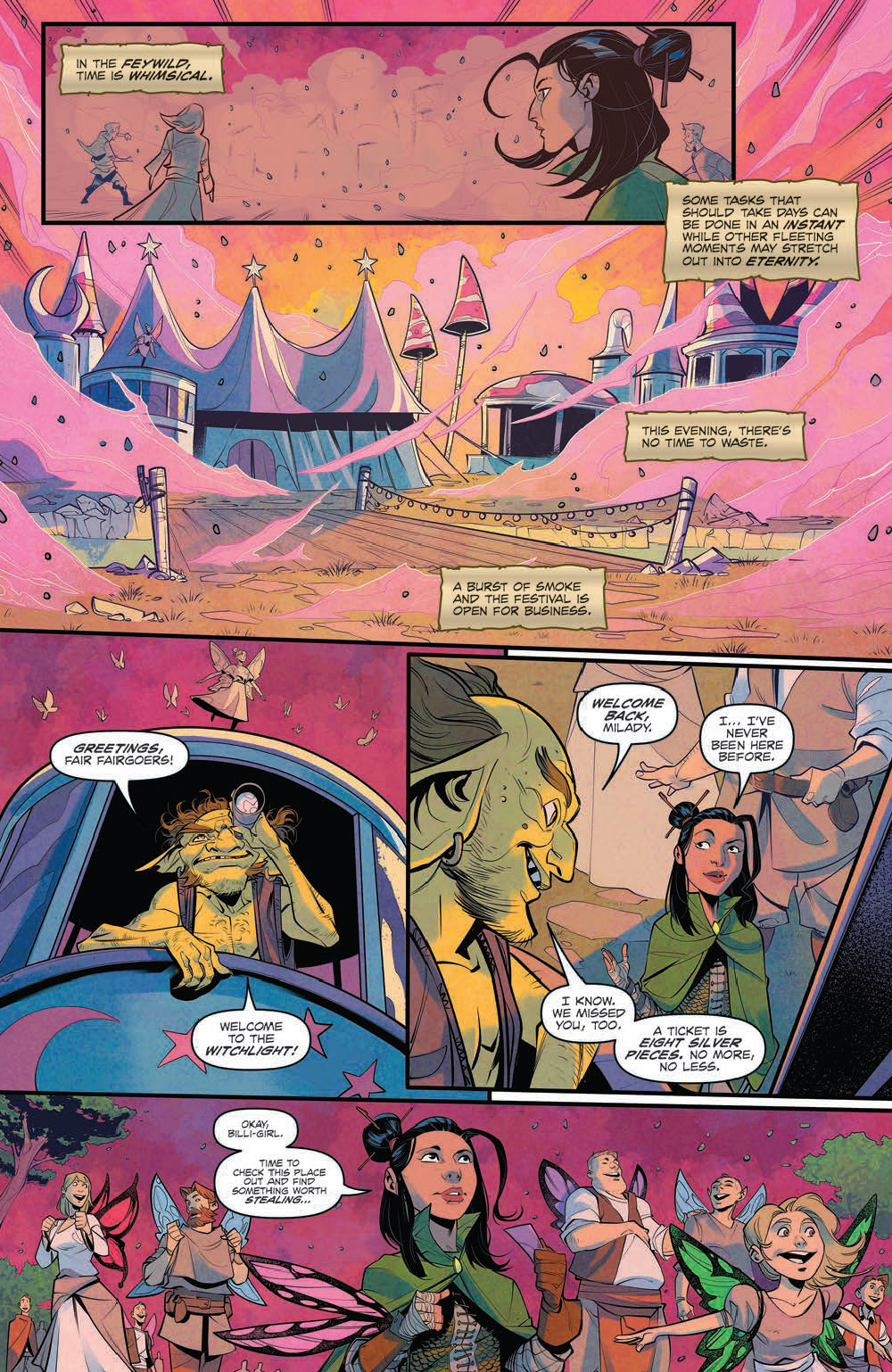 The Witchlight Carnival is a travelling circus filled with wild wonders aplenty, but its sensory splendors bring deep danger as well! Fan-favourite D writer Jim Zub explores the Feywild realm in this special self-contained issue that’s perfect for new readers and gaming fans alike!