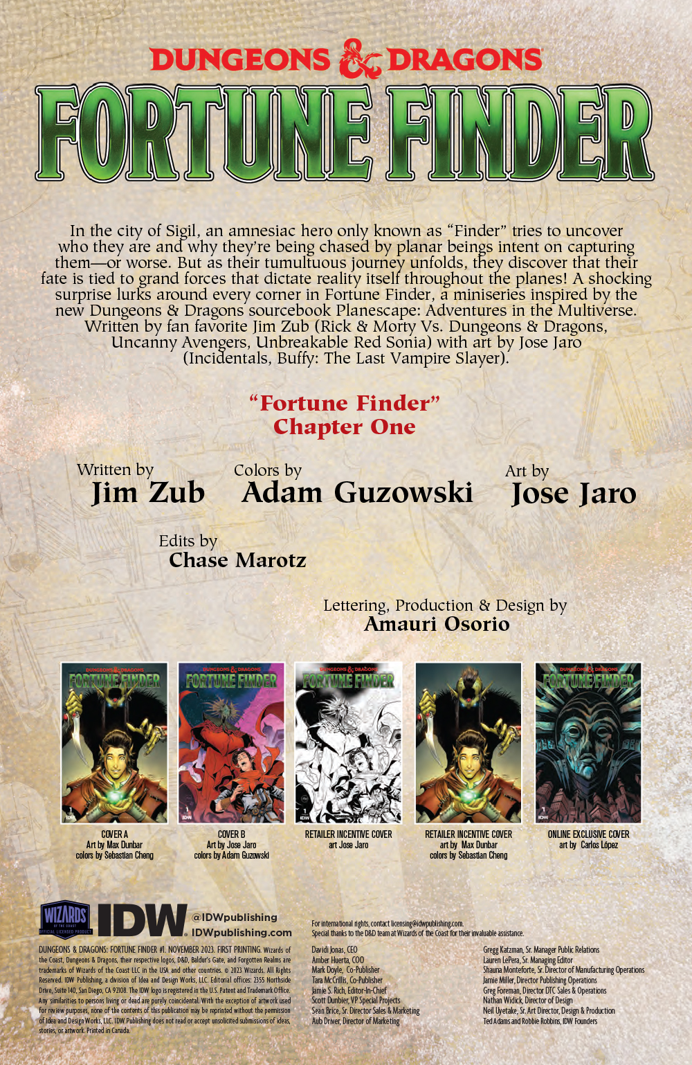 In the city of Sigil, an amnesiac hero only known as “Finder” tries to uncover who they are and why they’re being chased by planar beings intent on capturing them-or worse. But as their tumultuous journey unfolds, they discover that their fate is tied to grand forces that dictate reality itself throughout the planes! A shocking surprise lurks around every corner in Fortune Finder, a miniseries inspired by the new Dungeons & Dragons sourcebook Planescape: Adventures in the Multiverse.