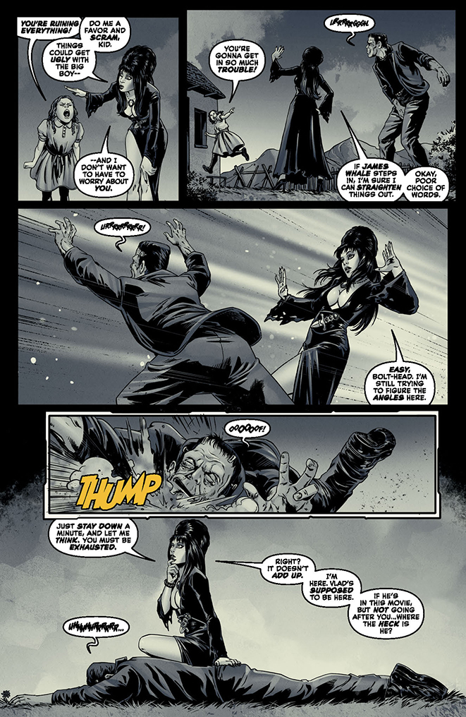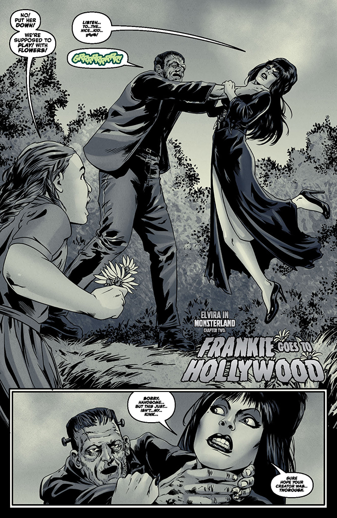 The Mistress of the Dark continues her journey through the Multiverse of Movies this week in Elvira in Monsterland #2 this Wednesday; check out the official preview of the issue below…