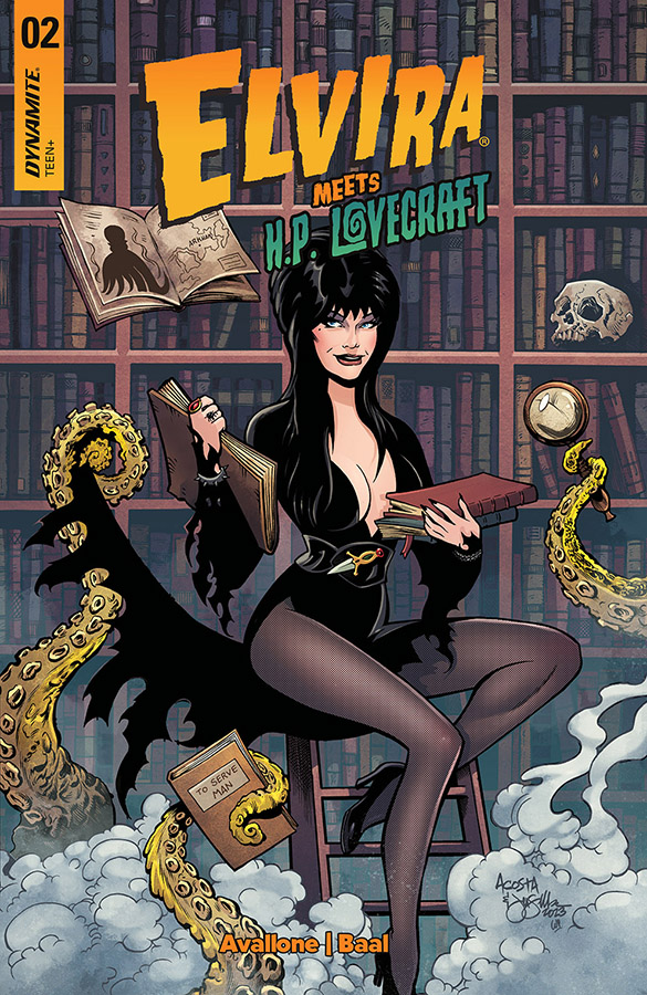 Secret knowledge is uncovered, hideous space gods are revealed, and late fines go unpaid in this madcap monster mash from writer DAVID AVALLONE (Elvira in Monsterland, Bettie Page: Unbound) and artist KEWBER BAAL (Elvira in Monsterland, Vampirella), with cover artists BAAL, DAVE ACOSTA, and DAVID HACK all returning from the grave, as well as a enchanting Elvira photo cover!