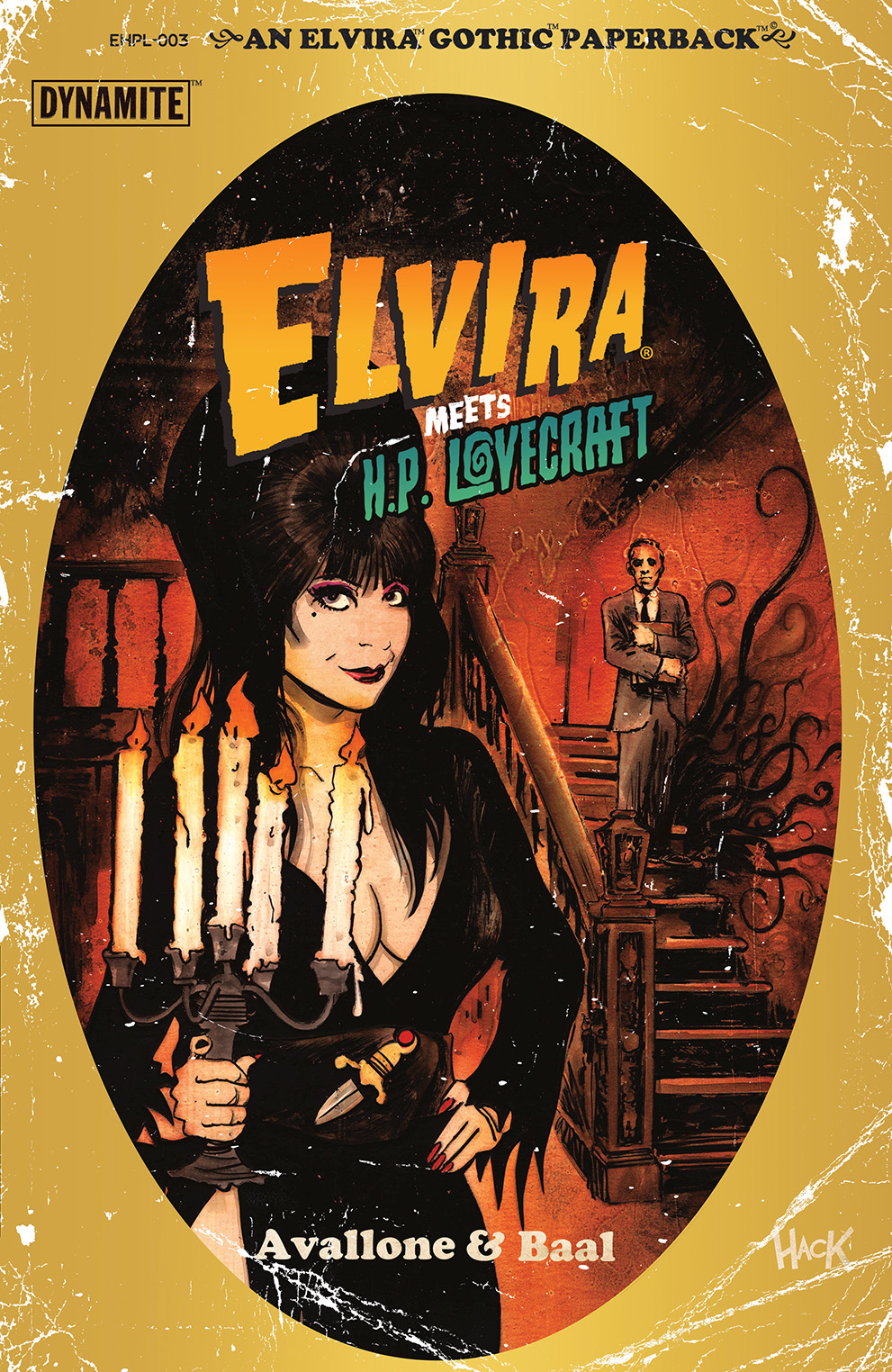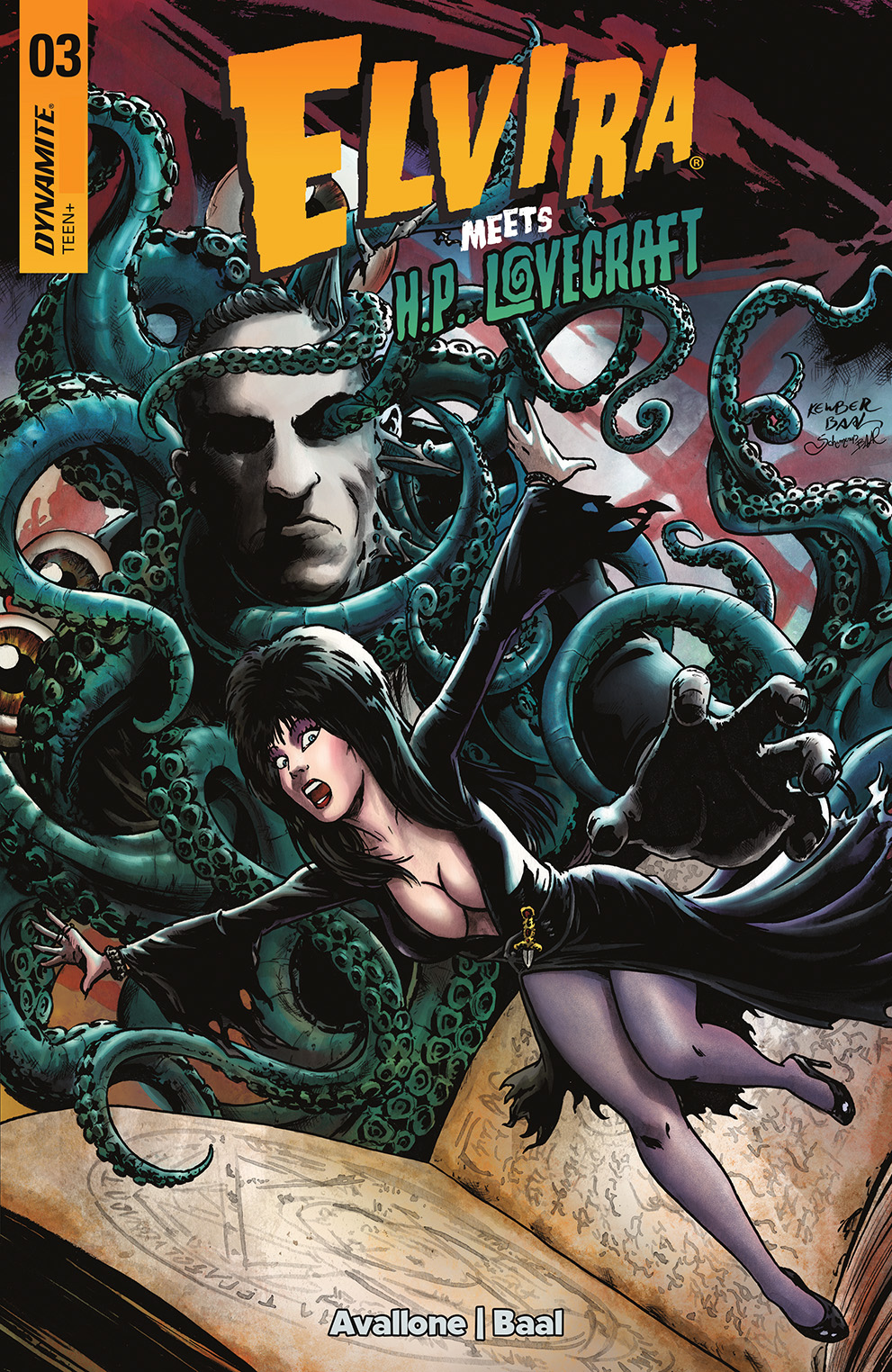 The quest for the last true copy of the Necronomicon brings Elvira and H.P. Lovecraft to the crumbling mansion of an old friend and colleague — an ancient pulp writer with disturbingly animated bookshelves. Will the Mistress of the Dark survive her visit to the Strange High House in the Mist, where the Terrible Old Man and the Haunters of the Dark guard the Lurking Fear From Beyond? All these and even more storied hijinks can be found in this exciting issue, brought to you by writer DAVID AVALLONE (Elvira in Monsterland, Bettie Page: Unbound) and artist KEWBER BAAL (Vampirella), and featuring cathartically creepy covers from BAAL, DAVE ACOSTA, DAVID HACK, and a stunning Elvira photo!