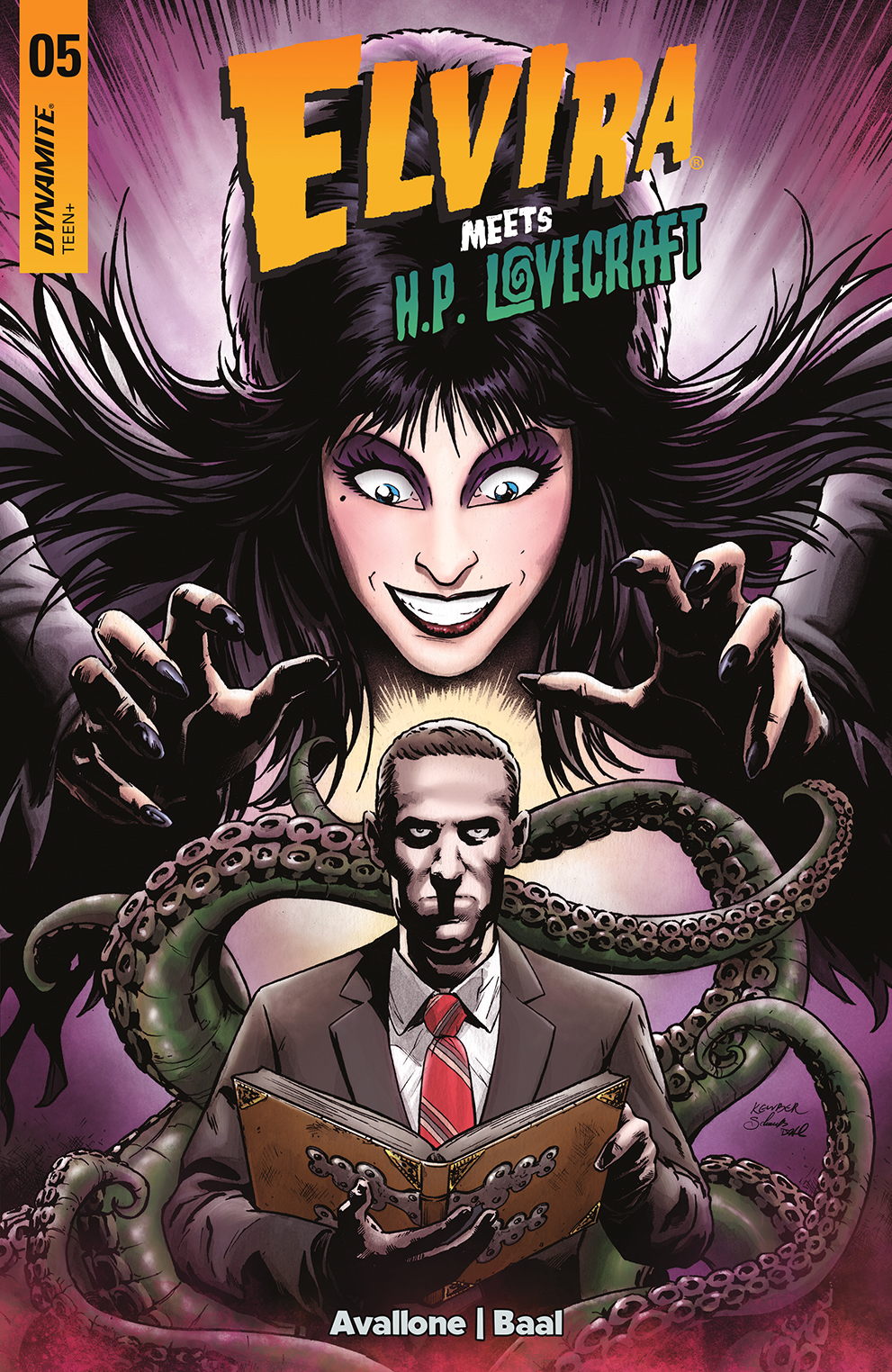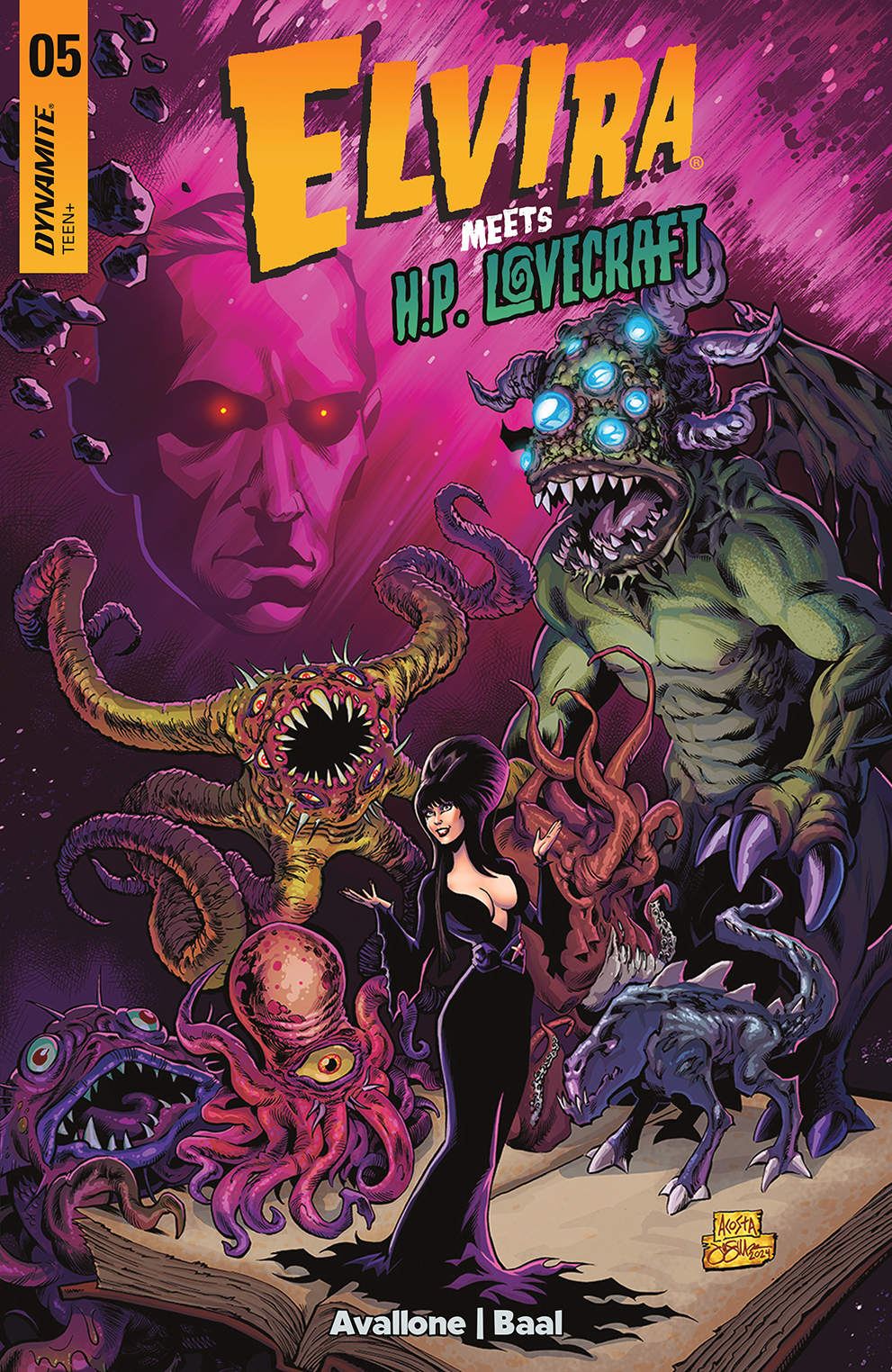 It’s Elvira versus Lovecraft in the final showdown between the Mistress of the Dark and the Master of Cosmic Horror. Will Earth succumb to the Great Old Ones? Will a dead racist author rule over all of reality? What are the overdue fees like when you’ve had the Necronomicon out on loan for 4,000 years? These and other questions will finally be answered by stygian scribe DAVID AVALLONE (Elvira in Monsterland, Bettie Page: Unbound) and atavistic artist KEWBER BAAL (Vampirella, Red Rising) in this senses-shattering, all-action finale of Elvira Meets H.P. Lovecraft — encrusted in covers by BAAL, DAVE ACOSTA, ROBERT HACK, and the ever-photogenic Queen of Screams herself!