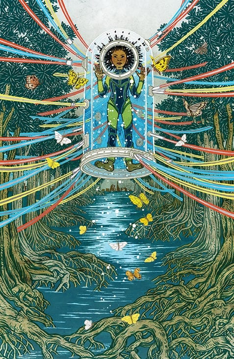 For fans of Undiscovered Country and Little Bird comes a new adventure series from award-winning author Victor LaValle (Victor LaValle’s Destroyer) and rising-star artist Jo Mi-Gyeong (Jim Henson’s The Dark Crystal) about a dangerous journey across a future dystopian America to save the world. When the ice caps melted, most of humanity was lost to the hidden disease that was released. Now, a mysterious girl named Eve has awoken in secret and must deal with a world that’s nothing like the virtual reality she was raised in. In order to save her real father, Eve must embark on a deadly quest across the country, but she has no idea of the threats that await her – or the price she will pay to restore life to a dying planet…