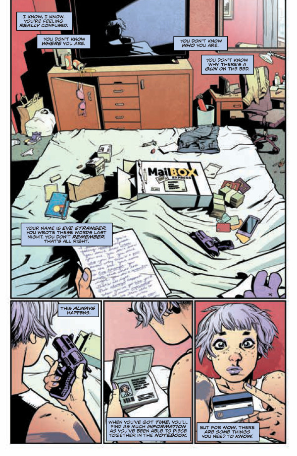 Writer David Barnett and artist Philip Bond’s new five-issue miniseries Eve Stranger launches this Wednesday through IDW Publishing imprint Black Crown, and we have a preview of the first issue for you here; take a look…