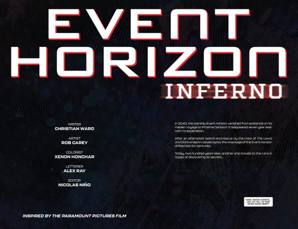 This coming Wednesday sees the launch of IDW Dark’s Event Horizon: Inferno, an official sequel to the cult classic 1997 sci-fi horror movie, and you can get yourself a sneak peek at the opening issue below with the official preview…