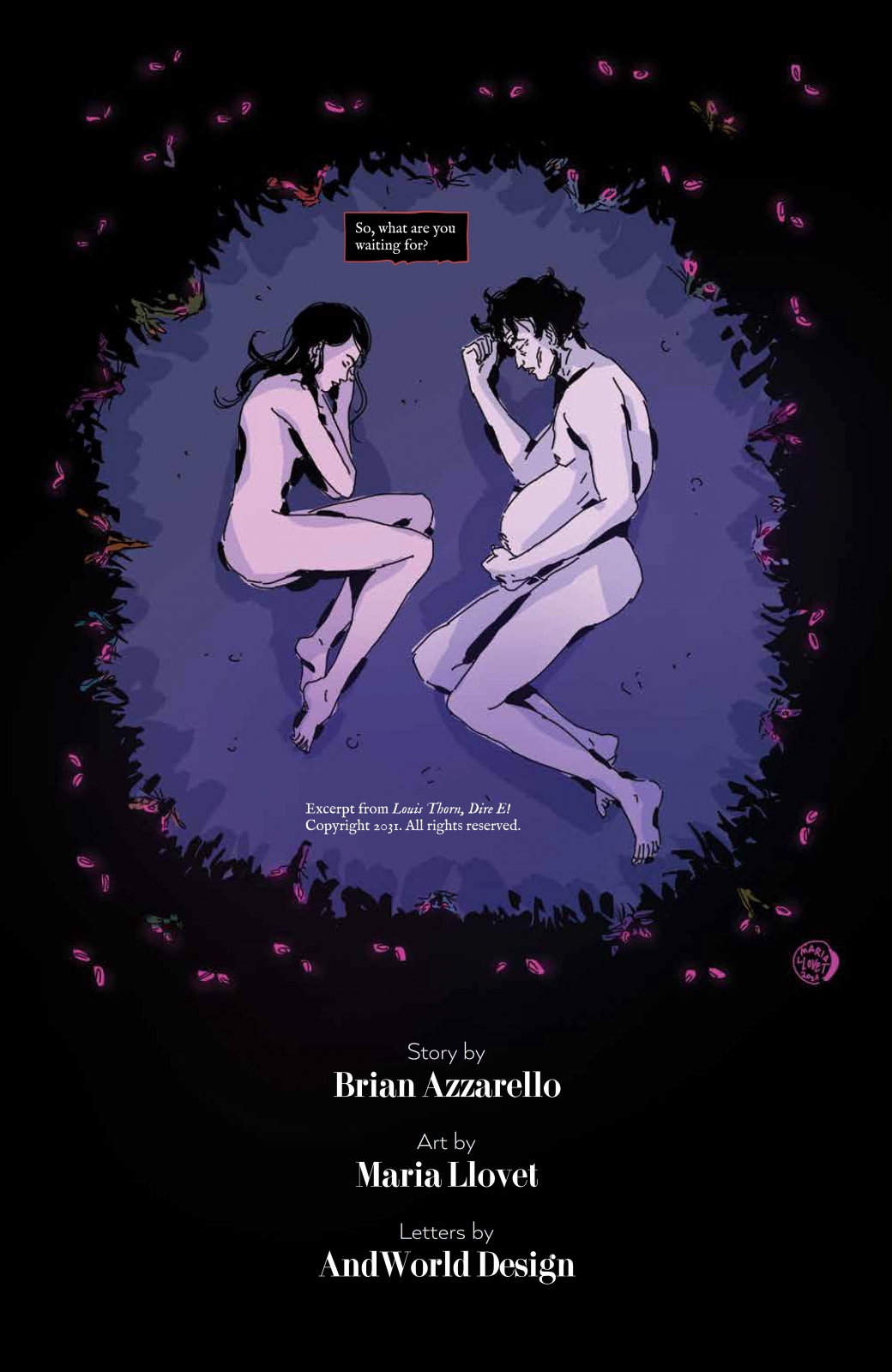 Nine months after her mysterious disappearance, Faith suddenly drops back onto the map. While the art world debates whether her disappearance was a piece of performance art or all just a publicity stunt, Faith retreats to Louis’s studio to recover from her journey into the unknown. But Ginny begins to realize that something is very much amiss with Faith. Where was she for nine months? And why does Faith suddenly seem so obsessed with Ginny’s son Jacob? The acclaimed team of New York Times bestselling writer Brian Azzarello (Batman: Damned) and Maria Llovet (Luna) reunite for the third and final act of their erotic thriller masterpiece!
