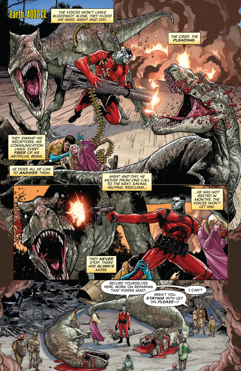 In the year 4002, a cyborg samurai named Rai struggles to find his morality, while the nanite-filled supersoldier Bloodshot is on a mission to save the citizens of Earth. Will they work together for the greater good? All signs point to no.