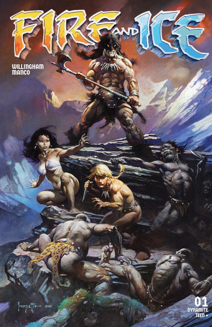 More than four decades ago, two iconic creators came together to bring to the silver screen an amazing new world of magic and adventure. In their classic animated film Fire and Ice, legendary artist Frank Frazetta and famed director Ralph Bakshi together with screenwriters Roy Thomas and Gerry Conway crafted a unique vision of beauty and danger, of good versus evil, all cast against a hypnotic backdrop of savage prehistoric splendor. Now, at long last, this timeless vision is expanding into comics with the first new story to revisit Fazetta and Bakshi’s remarkable realm since 1983!
