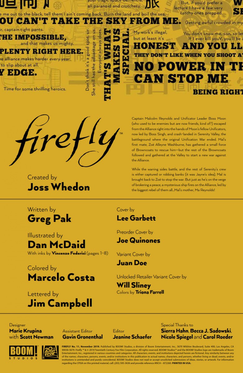 Firefly #11 is out on November 20th, priced $3.99.