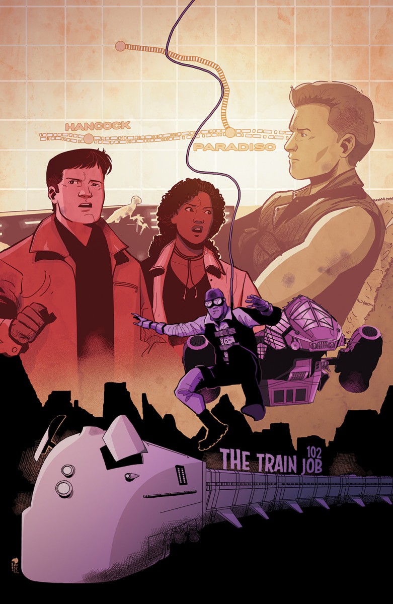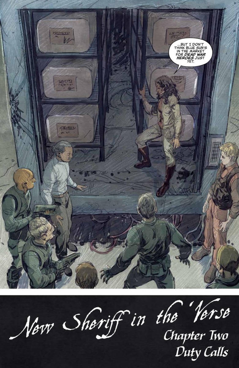 Mal matches wits with a serial killer! The newly minted Sheriff Mal (don’t call him that, though) and Boss Moon are given their first big case as local law enforcement—to hunt down and arrest a serial killer haunting their new town! As Mal and Moon dig deeper into the mystery behind the suspicious murders, a surprising new benefactor strolls in, offering new technology and new beginnings for the townspeople…all courtesy of the Blue Sun Corporation.