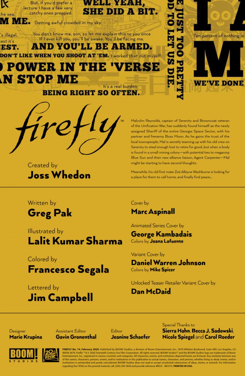 Boom! Studios releases Firefly #14 this coming Wednesday, and we’ve got a preview of the issue for you right here; enjoy…