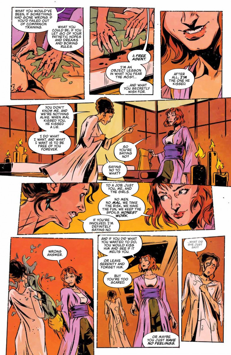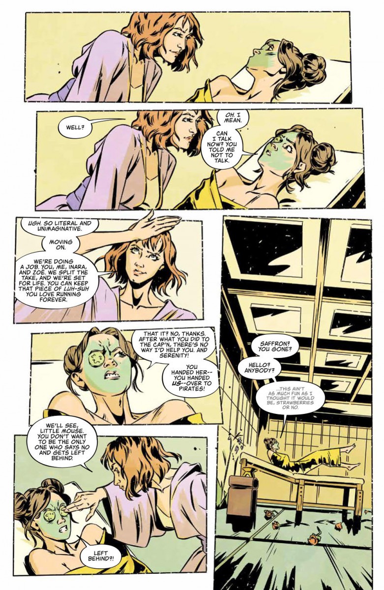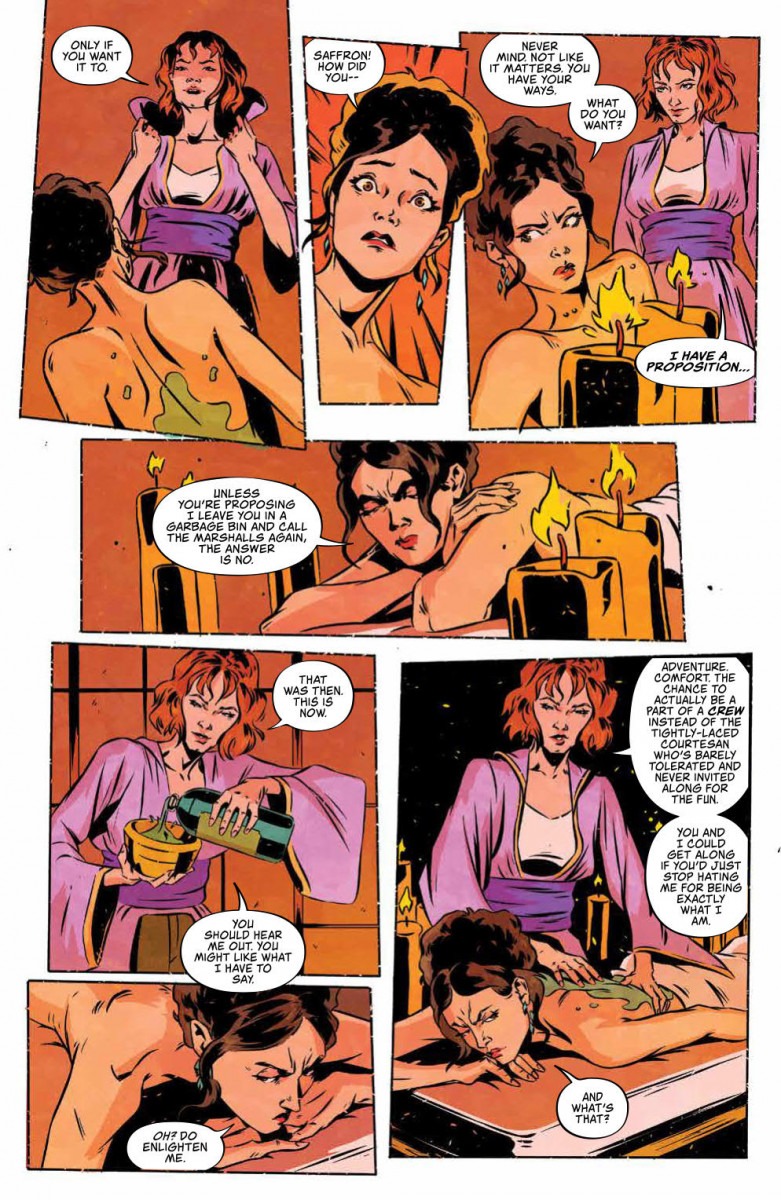 Saffron—the enigmatic rogue who captured the hearts of FIREFLY fans worldwide—returns to Serenity. But this time, she’s got no time for Capt. Malcolm Reynolds, as she’s there to recruit the women of the ship to join her on a heist that has personal stakes for all involved.