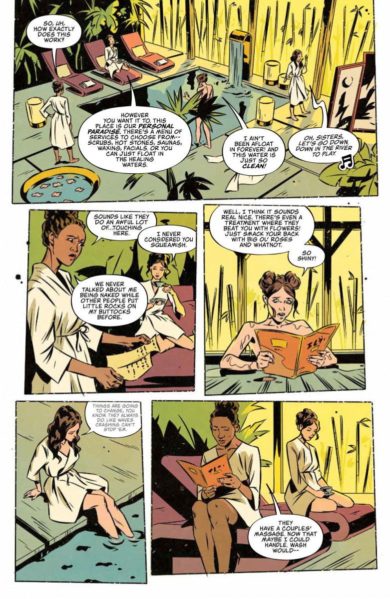 New York Times bestselling writer Delilah S. Dawson (Sparrowhawk, Star Wars: Phasma), along with a team of artists including Pius Bak, French Carlomagno, and Rodrigo Lorenzo reveal a new take on the world of Joss Whedon’s FIREFLY, as each artist shows the heist from the point-of-view of a different woman on the crew.