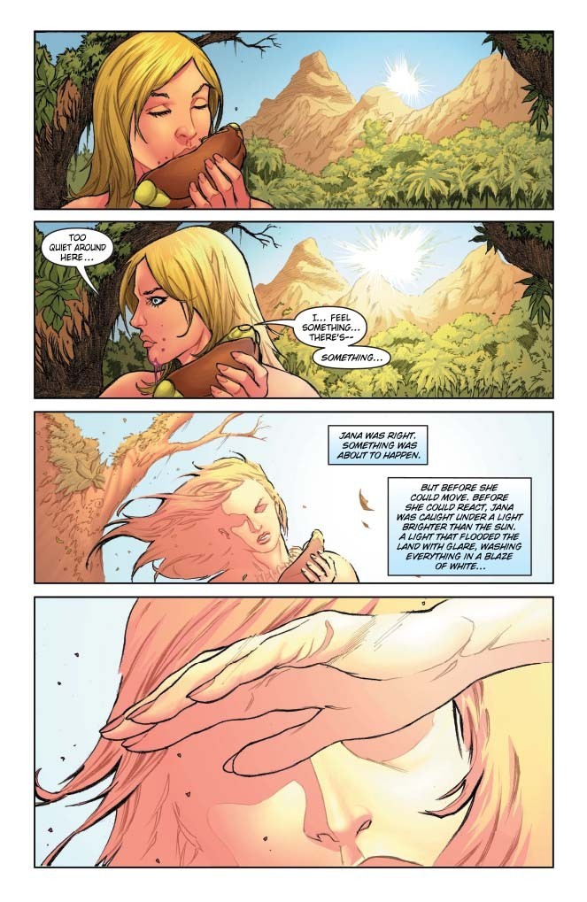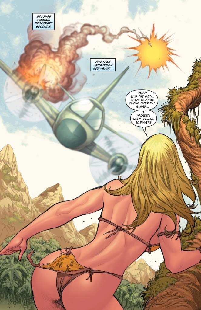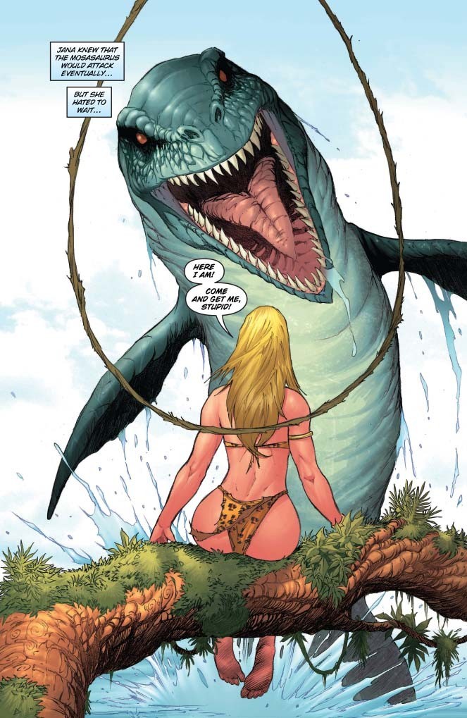 Jana the Jungle Girl lives in a strange land – a land filled with dinosaurs, prehistoric men, and much, much more! When a group of intruders finds themselves in need, Jana races to save them, kicking off a chain of events that, with each new chapter, reveals more clues about the nature of Jana, and of the island itself!