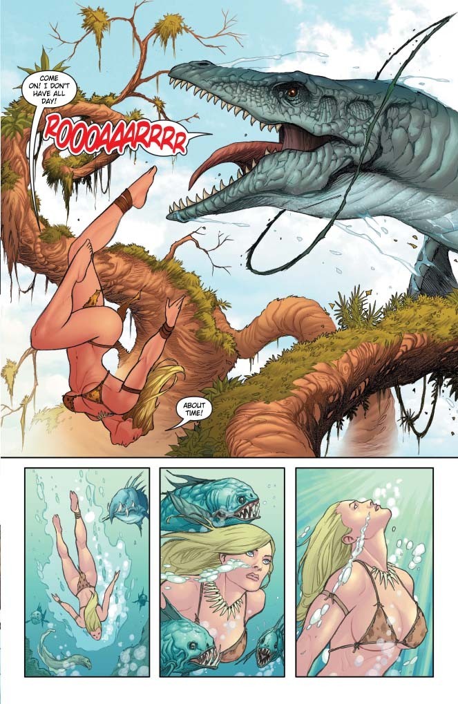 Dynamite Entertainment releases Frank Cho’s Jungle Girl Complete Omnibus this Wednesday, featuring 392 pages of action and adventure across three “seasons” of Cho’s Jungle Girl series; check out a preview here…
