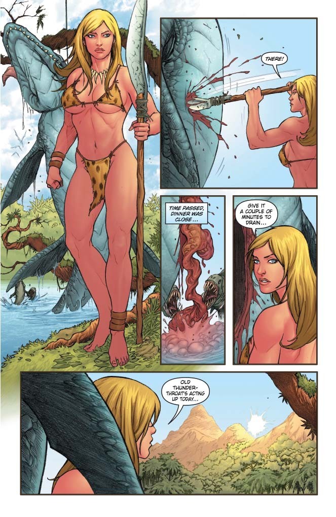 Dynamite proudly presents Frank Cho’s Jungle Girl! Overseen by co-writer and artist Frank Cho and infused the issue with everything Cho fans want to see — beautiful women, thrilling adventures, and, of course, dinosaurs — Jungle Girl also features Co-writer Doug Murray (Red Sonja: Queen of the Frozen Wastes, The ‘Nam) who’s along for the ride, as is series artist Adriano Batista (New Battlestar Galactica: Zarek, Red Sonja) as they bring the Jungle Girl to life!