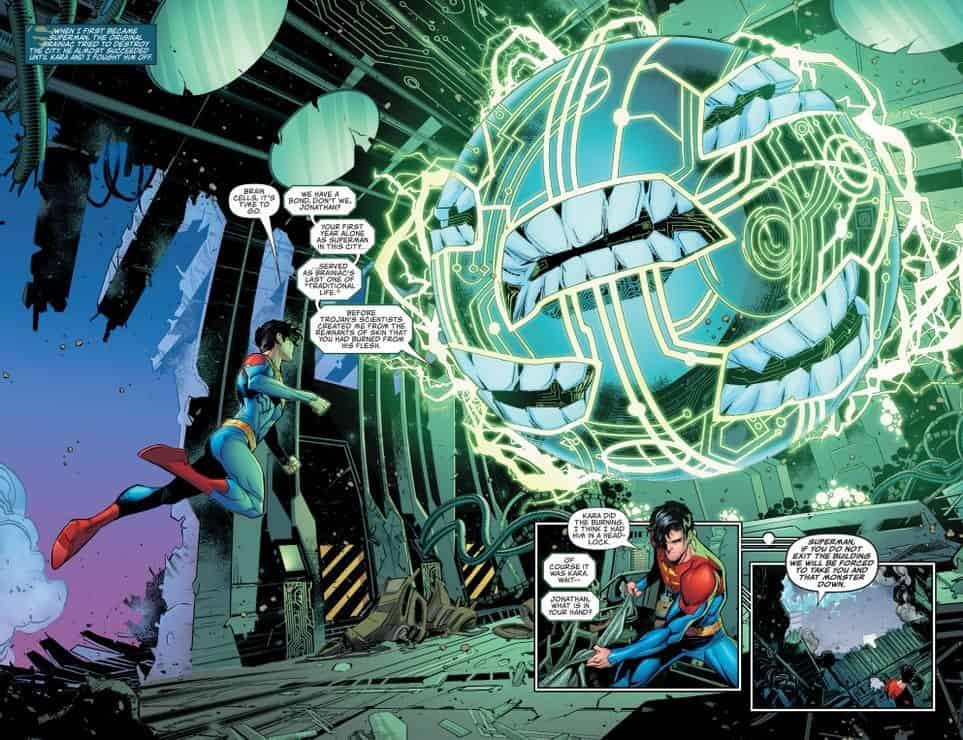 Now, Jonathan Kent is Superman! Top priority for this new Superman: to protect Metropolis. When a new version of Brainiac attacks, Jon takes drastic measures—which result in the Bottle City of Metropolis! But watch out, Jon, because Supergirl is on her way, and she is not happy with your decision.