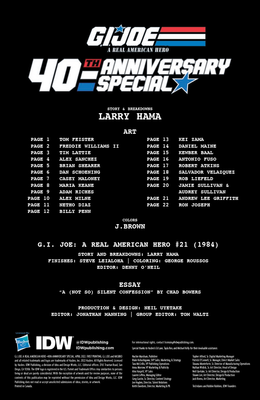 IDW Publishing celebrates 40 years of G.I. Joe: A Real American Hero this week with an oversized special which includes a tribute to the classic ‘Silent Interlude’ from G.I. Joe: A Real American Hero #21 along with new tales and a short story from legendary G.I. Joe creator Larry Hama; check out the official preview here…
