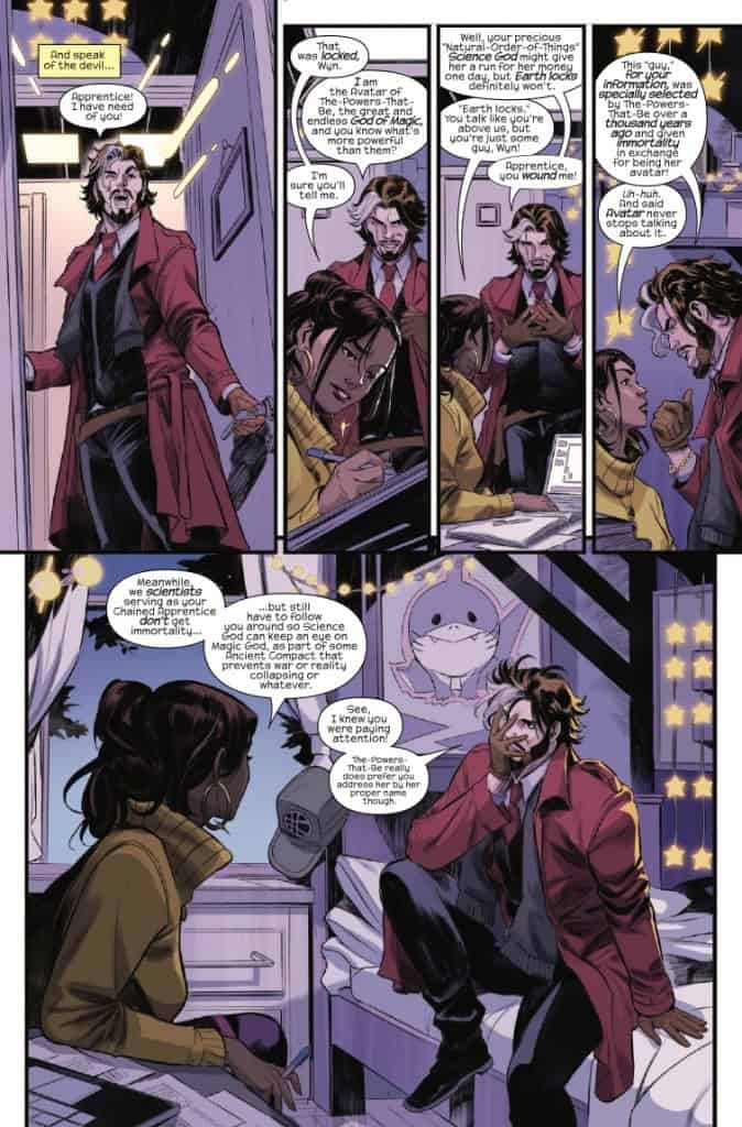 ONE WORLD UNDER DOOM! Using a combination of science and magic, Doctor Doom has taken over the world, which means Wyn – sole Avatar of The-Powers-That-Be (think: Magic God) – has an interest in how this happened AND how to stop it. His sworn apprentice, Mia DiMaria – a college-aged woman disillusioned with most magic, some science and definitely ALL of her job working for Wyn – is brought along, and soon finds herself at the center of a crisis that could impact Earth for generations to come. And worst of all, Doctor Victor Von Doom believes Mia has potential – especially if she were to be freed from Wyn’s control. Doom offers freedom, but all gifts from Doom come with a cost…don’t they? Science and magic collide in this oversized one-shot that brings the world of G.O.D.S. to the heart of the Marvel Universe! And if you don’t yet know the world of the GODS, this is the book for you: It is both accessible AND apocalyptic.