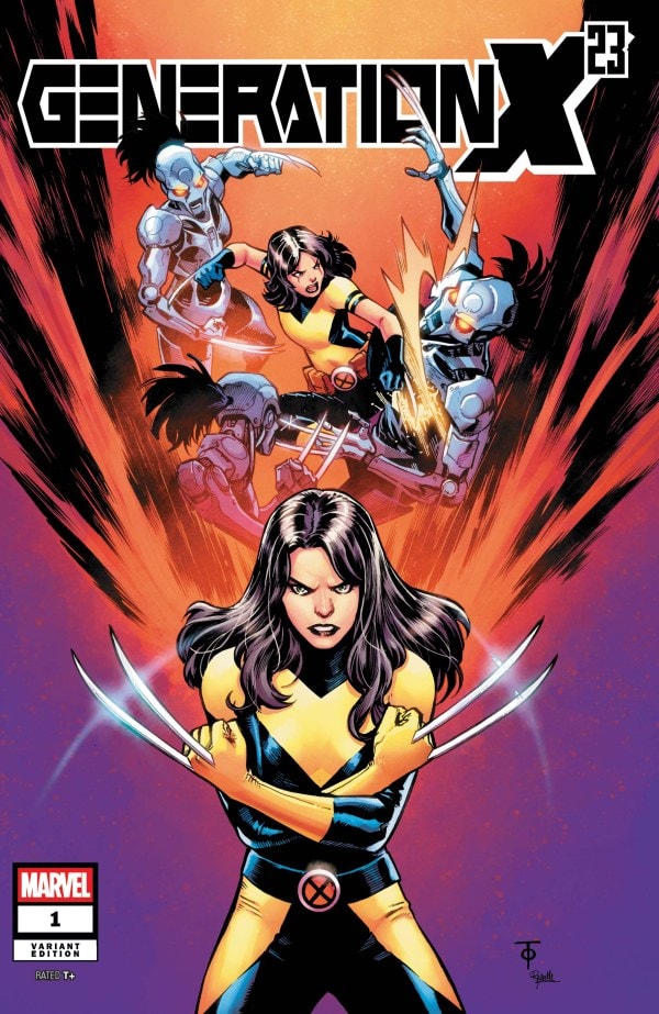 HER NAME IS WOLVERINE. BUT THE LEGEND OF X-23 GROWS. LAURA KINNEY was brainwashed and trained from birth to be the ultimate assassin as X-23. She’s long put that life behind her… but it seems she hasn’t quite outrun it yet! When LAURA and GABBY encounter someone who seems to be their LONG-LOST FRIEND, the harrowing plot they uncover will turn their worlds upside down. The next generation of X-subjects is here, and they follow in the deadly footsteps of X-23! Featuring a host of new heroes and villains, Generation X-23 have a surprise in store for the WOLVERINE!