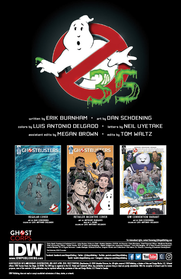 Ghostbusters: 35th Anniversary: Ghostbustersis out on Wednesday, April 3rd, priced $3.99.