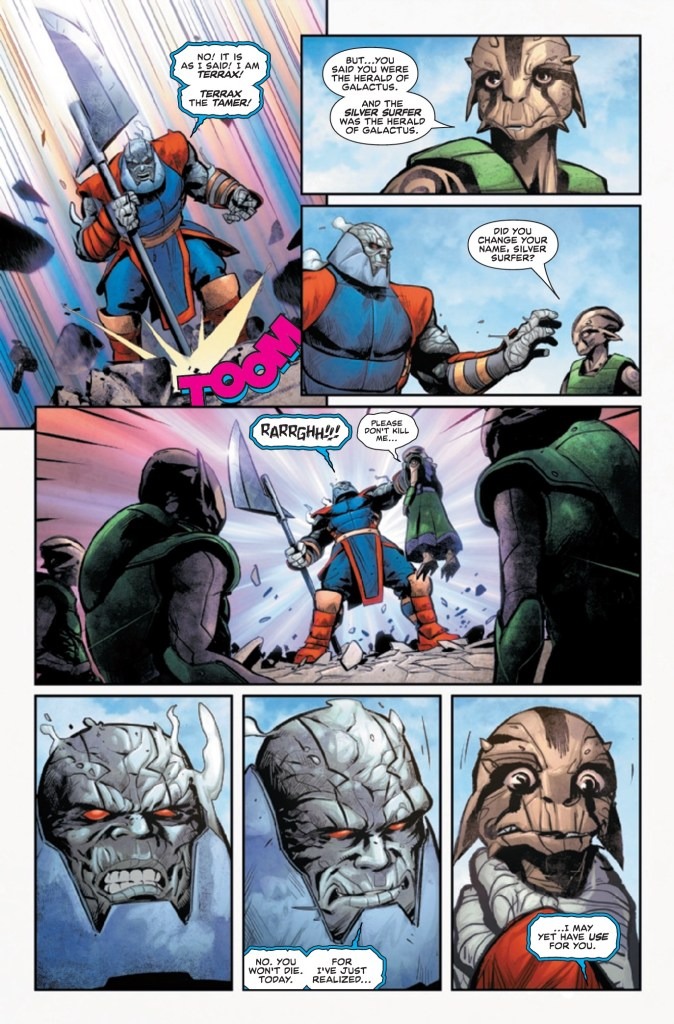 Terrax the Tamer is determined to escape the Silver Surfer’s shadow for once and for all – and to do so, he has created a deadly trap that the Surfer cannot escape! But in the midst of Terrax’s brutal campaign to destroy the Surfer’s reputation, can the Surfer maybe find a way to save Terrax himself? PLUS: A reprint of SILVER SURFER #80, in which the Surfer is caught in the crossfire of an epic throwdown between Terrax and Morg the Executioner!