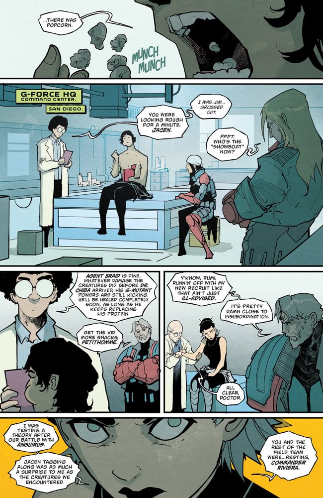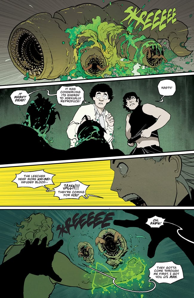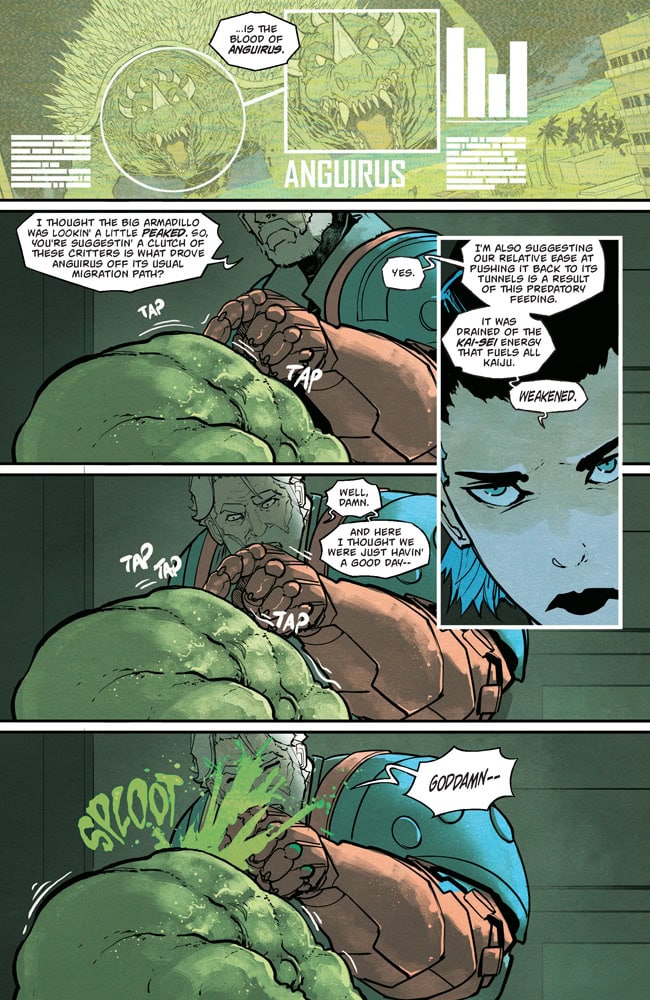 After a shocking first issue, the flagship ongoing of the Kai-Sei era is back with more! Jacen and his fellow G-Force members made short work of Anguirus… but were they only able to defeat the kaiju because it was weakened by the same leeches currently fighting to bring Jacen to a watery grave? And if these leeches are able to weaken kaiju… can G-Force weaponize them in their mission to kill Godzilla?