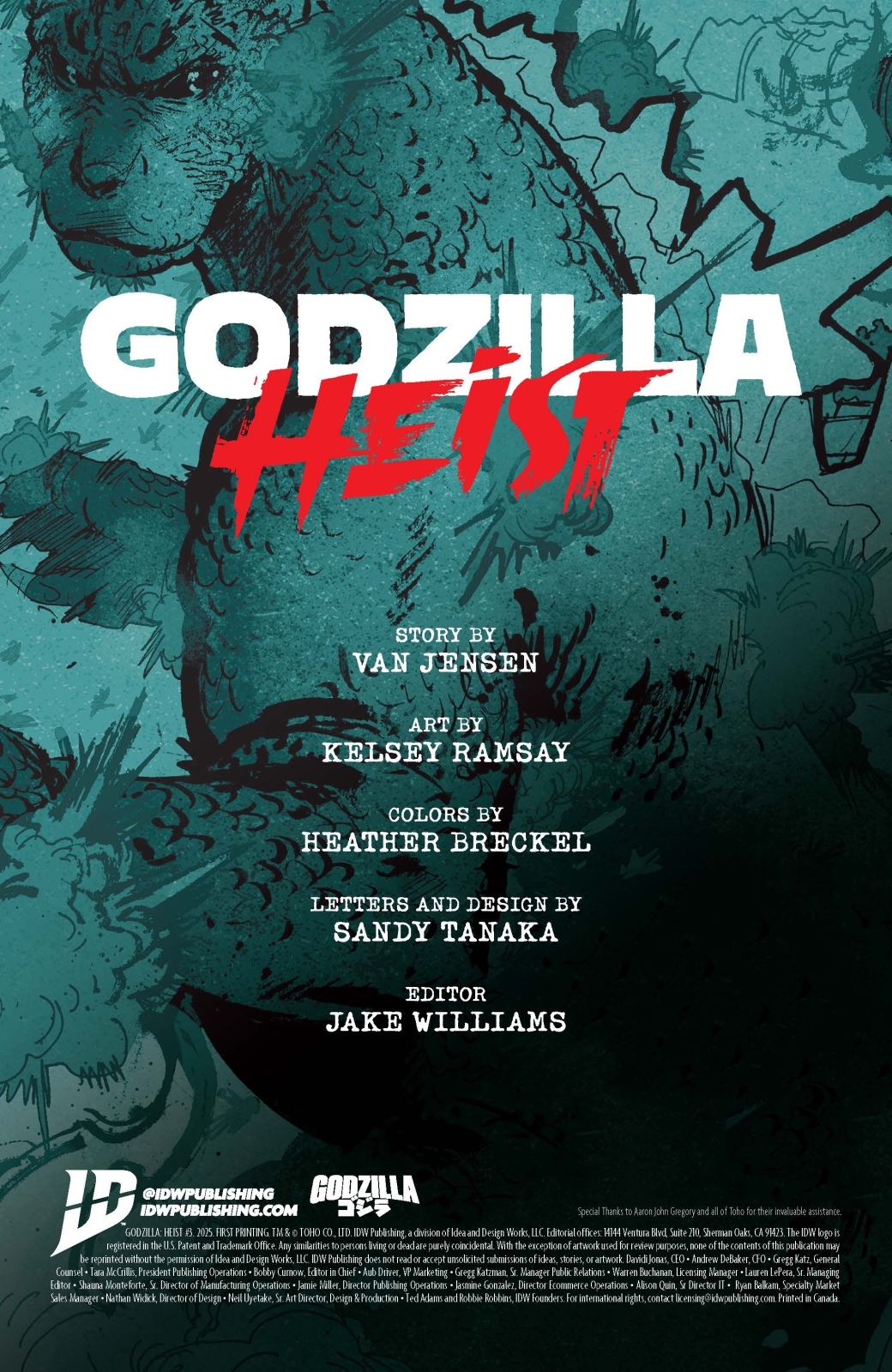 IDW Publishing’s Godzilla: Heist continues this Wednesday with the release of issue #3, and you can take a look at the official preview below…