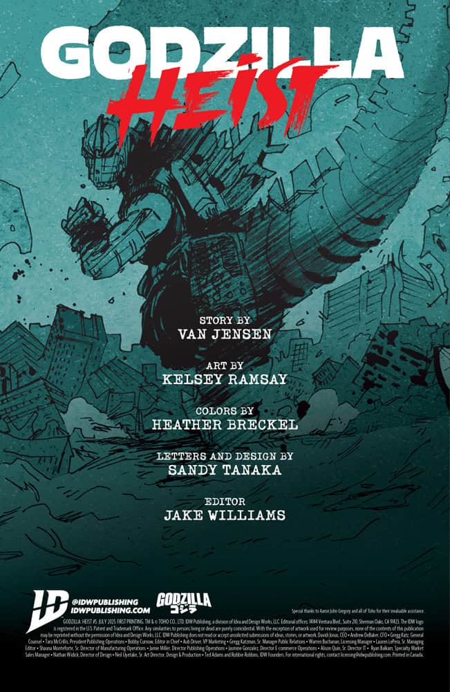 Godzilla: Heist #5 is out on Wednesday, July 2nd 2025.