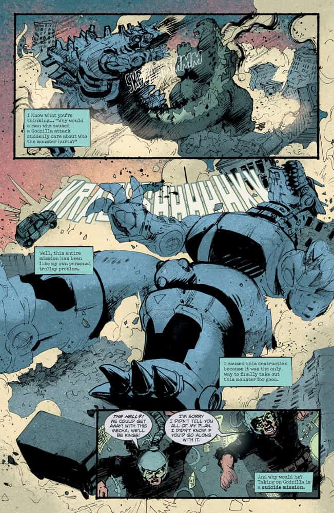 IDW Publishing releases Godzilla: Heist #5 on Wednesday, and you can get yourself a sneak peek at the issue below with the official preview…