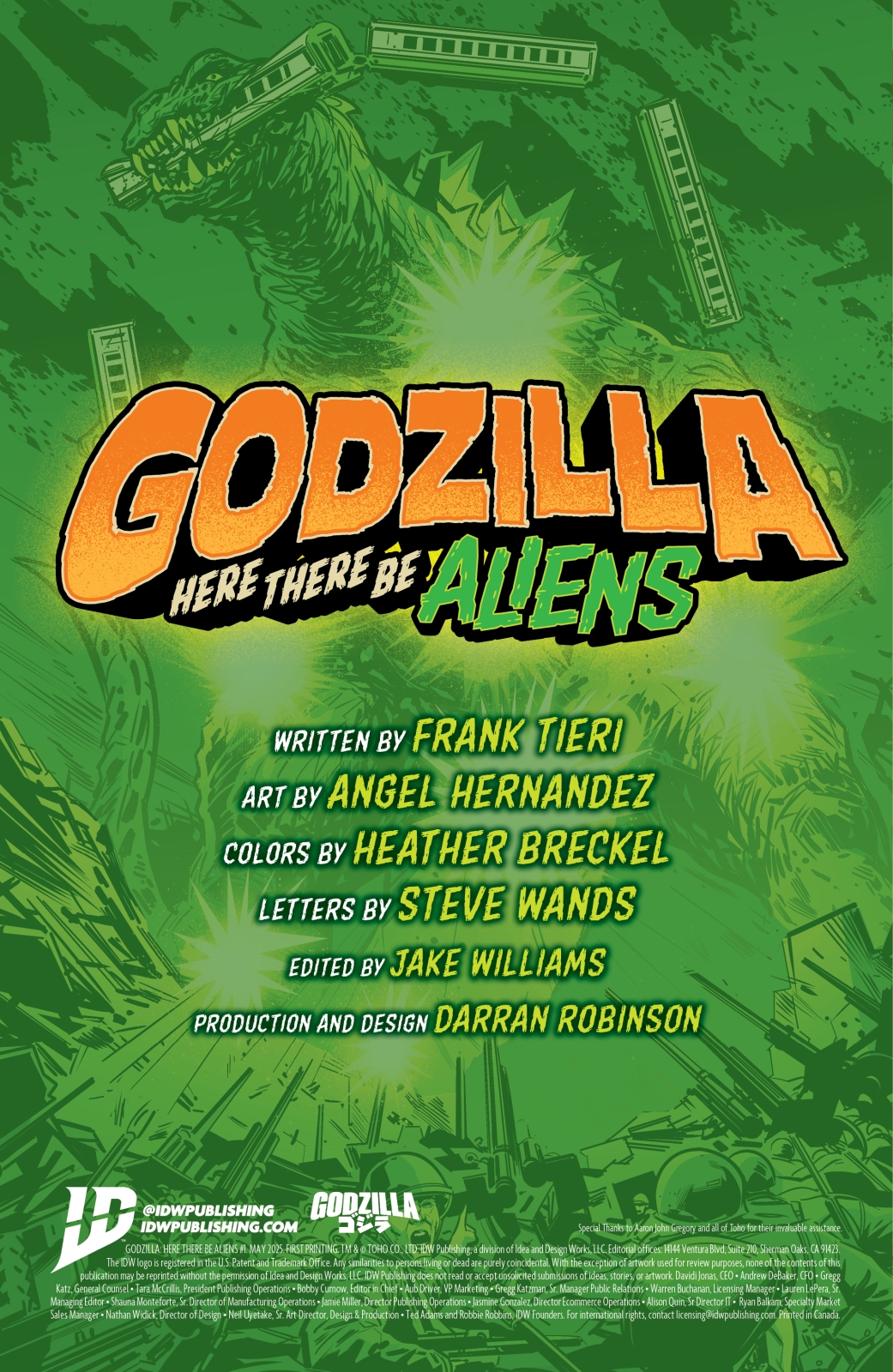 Godzilla: Here There Be Aliens is both a fully standalone limited series and the epic conclusion to the Eisner-nominated Godzilla: Here There Be Dragons trilogy! Brought to us by veteran scribe Frank Tieri (Wolverine, Jughead: The Hunger) and new series artist Angel Hernandez (Star Trek).