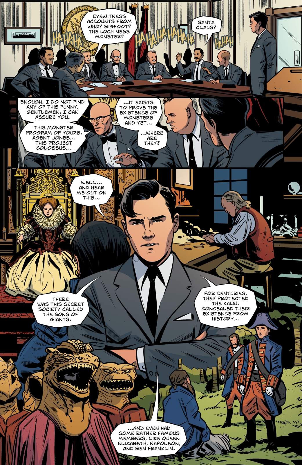 These UFOs are actually the Xilien invasion force! Revealed to have already been on Earth during the events of Here There Be Dragons: Sons of Giants, the Xiliens have been attempting to destabilize the planet with the help of kaiju from outer space! With the aliens’ claws deep inside the U.S. government, will our rogue operatives manage to band together to save humanity?
