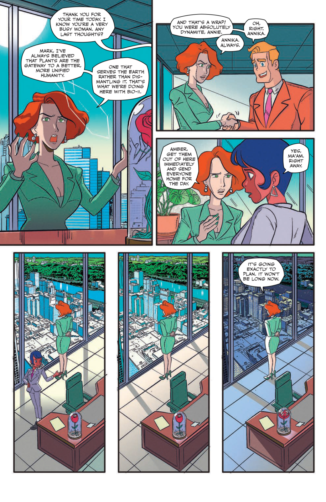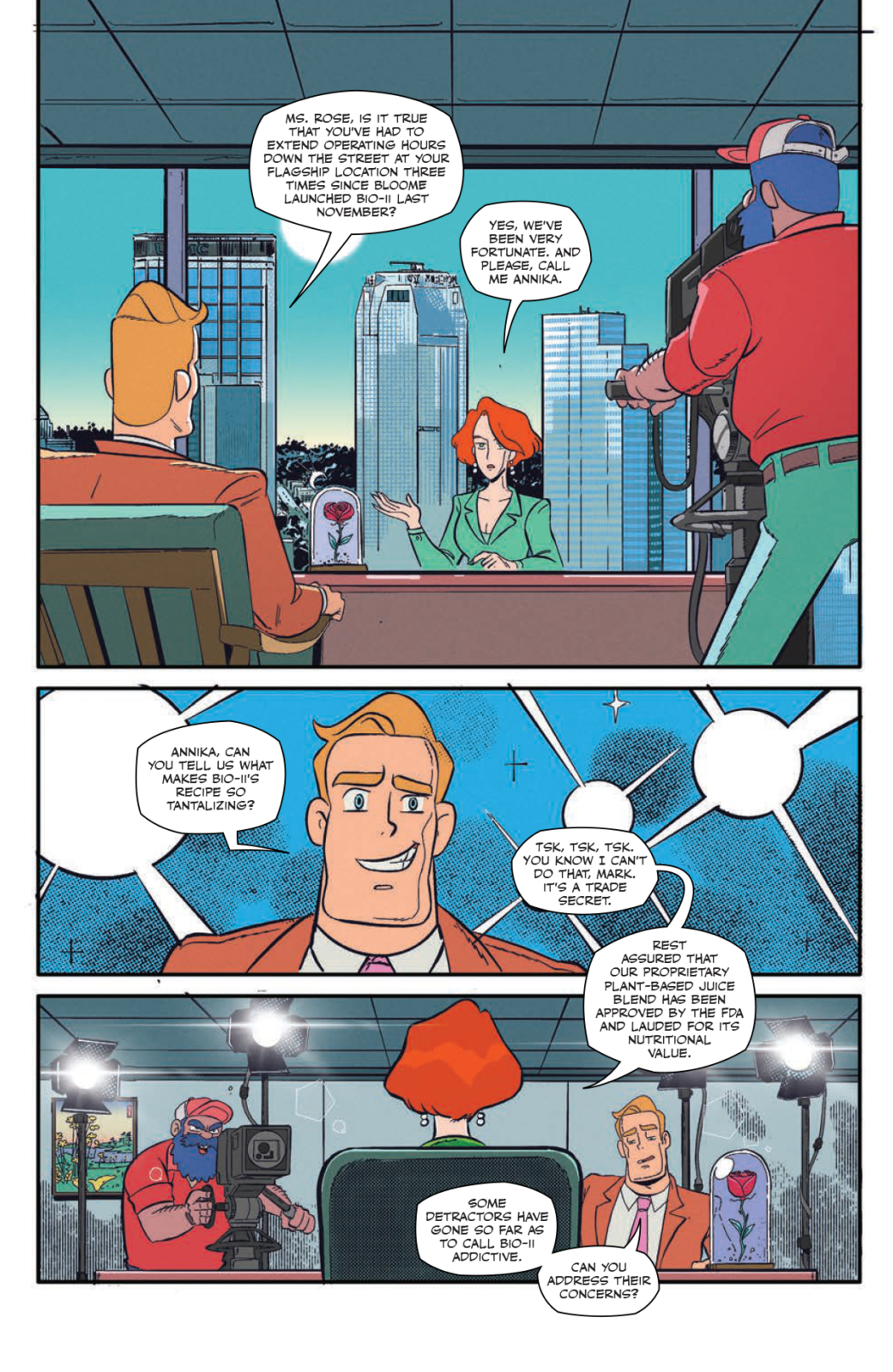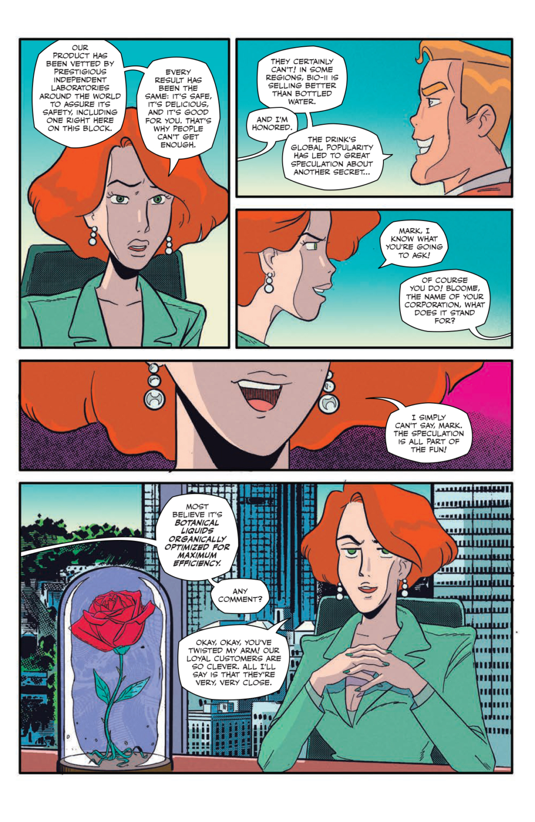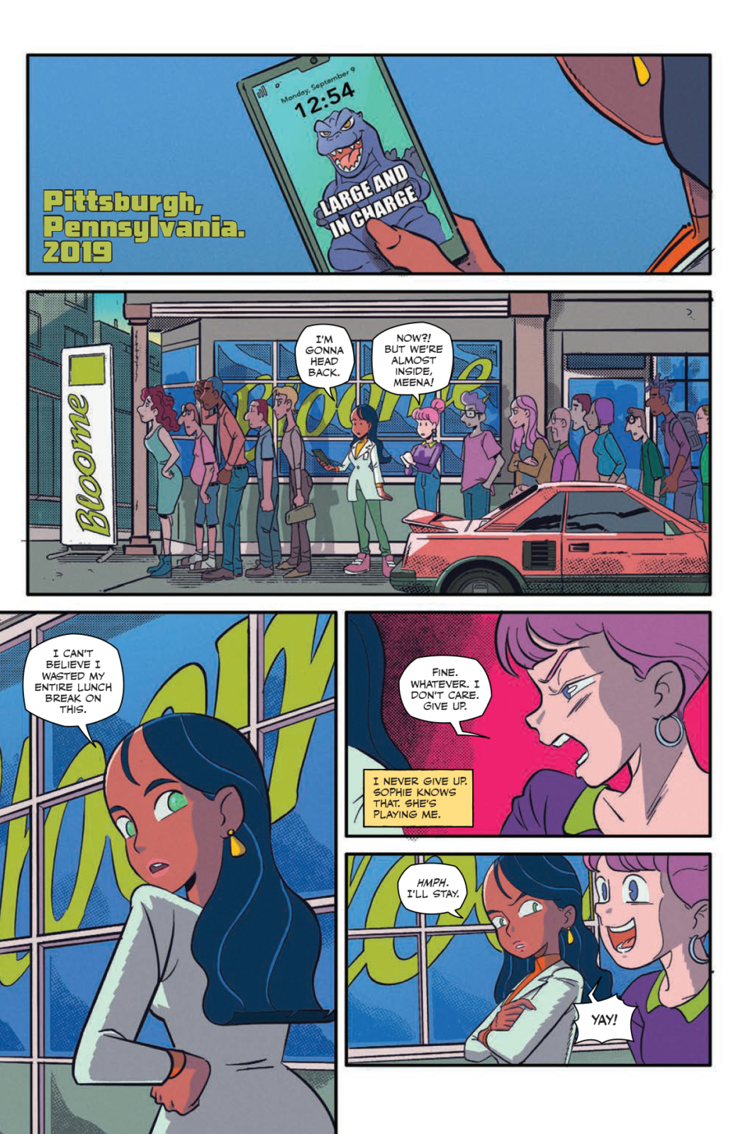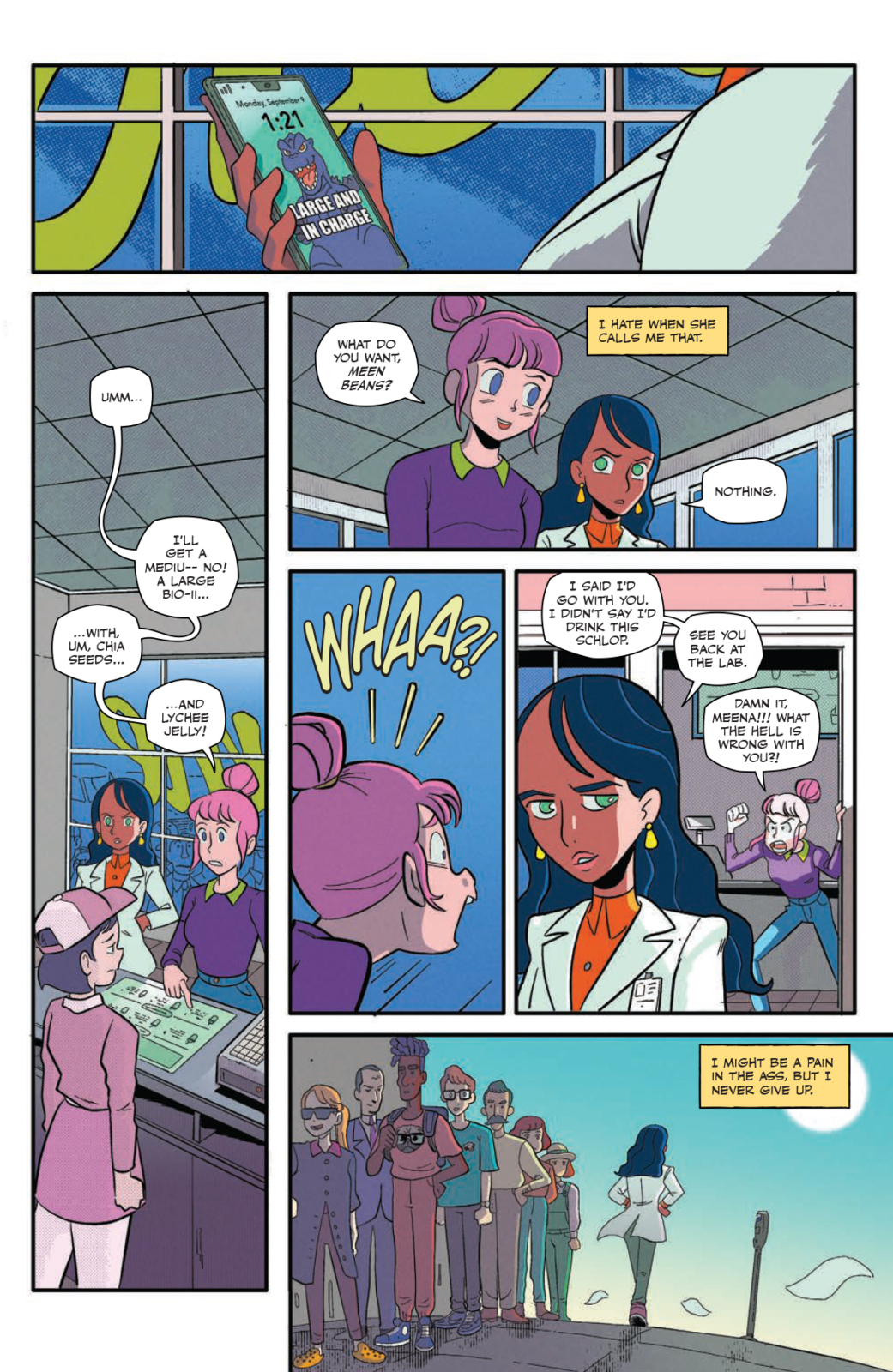 Dr. Meena Shyam is a disgraced kaiju researcher whose radical ideas saw her shunned by the scientific community. Needles is a slacker hacker who’s just cracked the code behind BLOOME’s proprietary recipe.