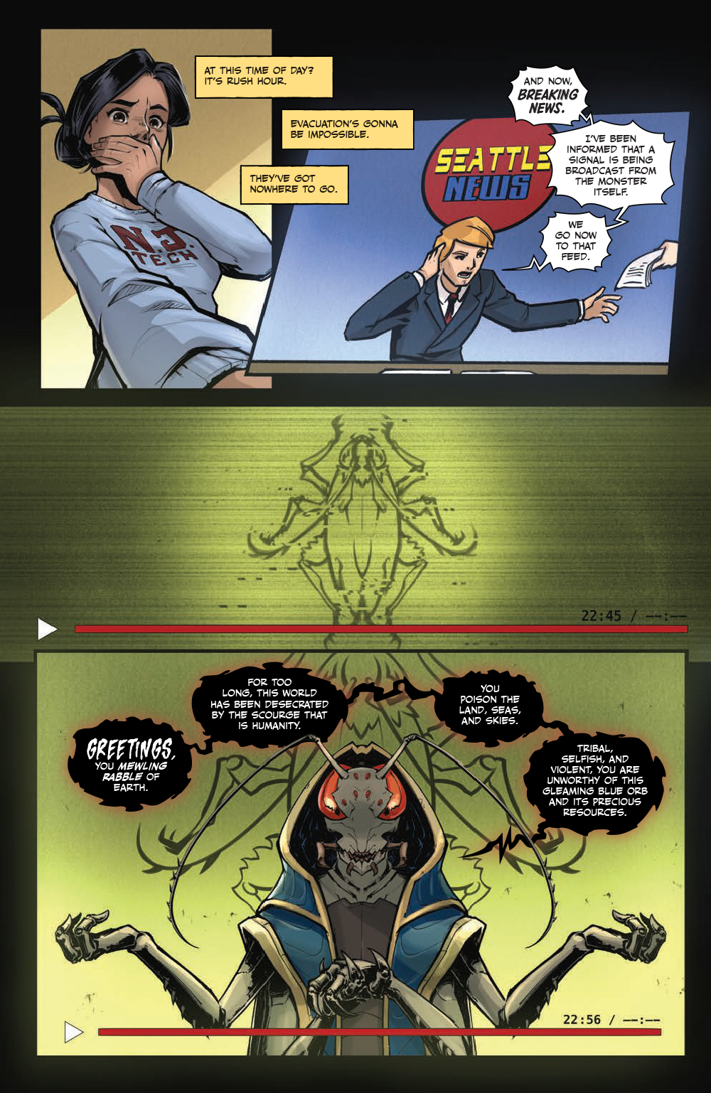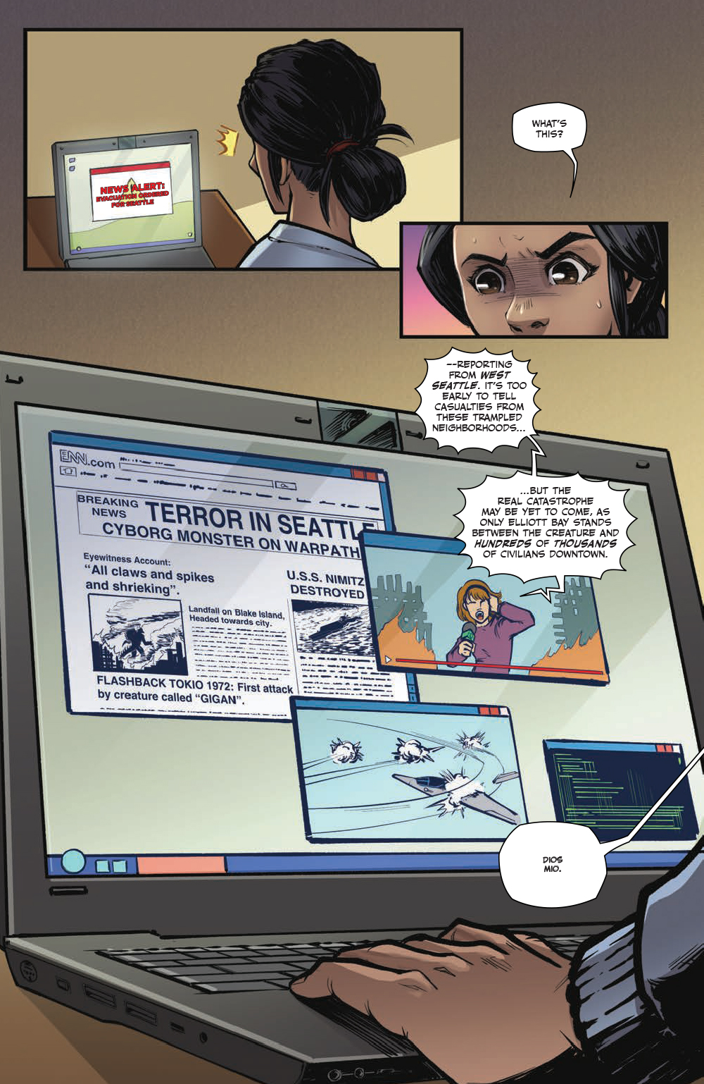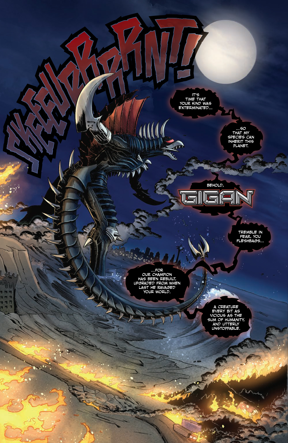 Seattle, 2008. Networked computers and video game consoles have connected millions across the globe in virtual combat… and an insidious intelligence has taken notice. The insectoid Nebulans, would-be conquerors of Earth, have hijacked the MMOs and uploaded the collective fighting techniques and strategy of gamers worldwide directly into the central processing unit of their cyborg champion. What chance does Godzilla have at victory when the vicious opponent Gigan has been augmented by the savagery of all humanity?