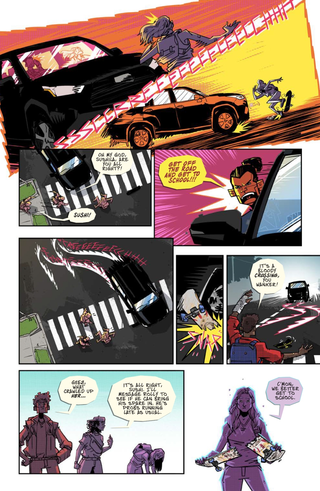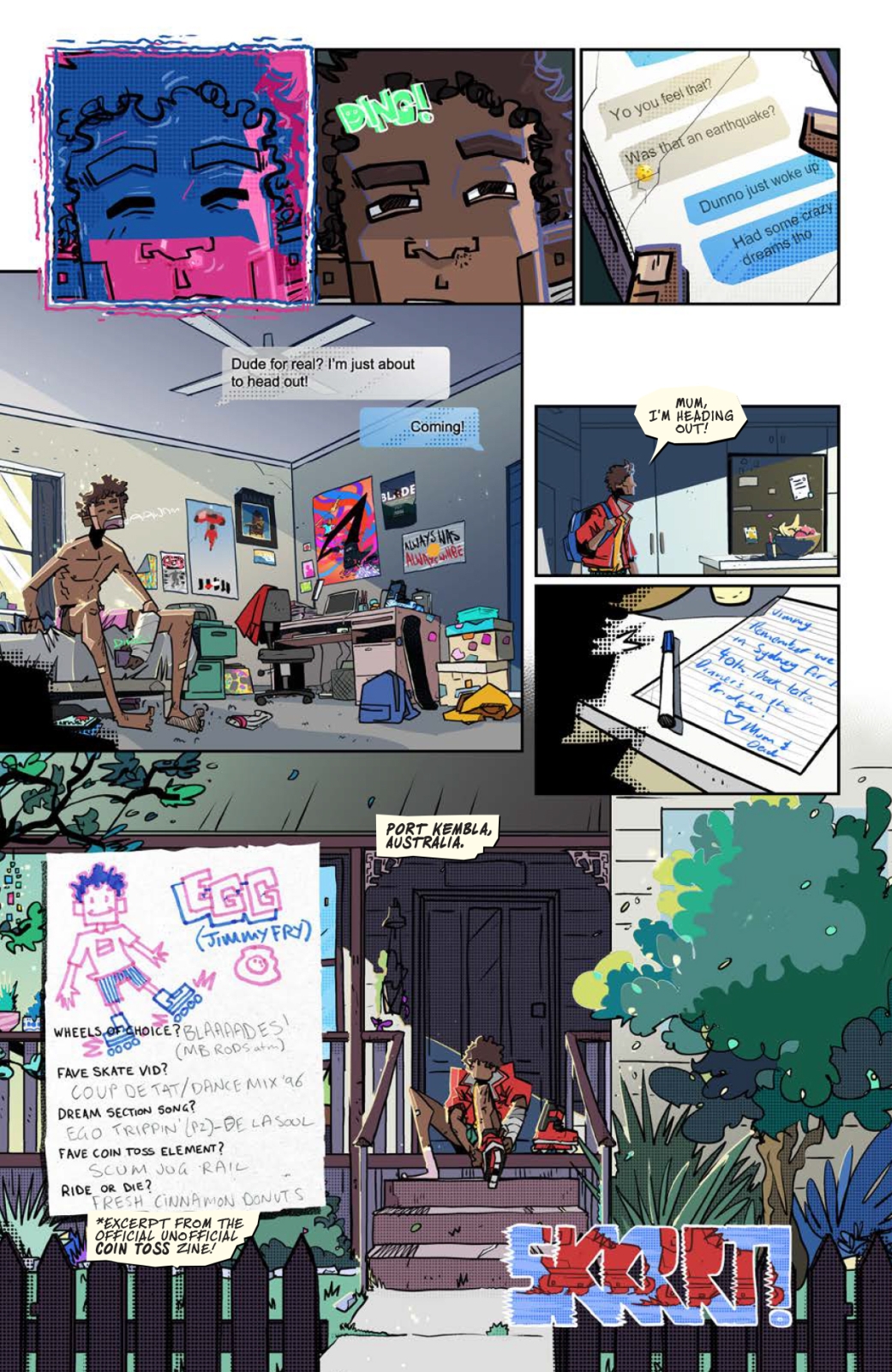 Australian skater punks versus Varan and the King of the Monsters in this thrilling debut issue by writer/artist Louie Joyce! Four years ago, four best friends and die-hard skaters found the perfect location for a DIY skatepark. After months of hard work, they created the world’s sickest spot that they could enjoy for the rest of their lives… That is, until the ferocious Varan appeared in the middle of central Australia and started making a beeline for their beloved park. Why is Varan on a rampage? Why did Godzilla just appear off the coast? What does their beloved skate spot have to do with this? And most importantly… what are these punks willing to do to save it?