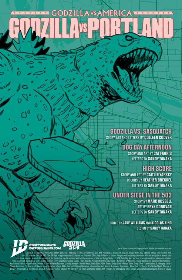 IDW Publishing releases the one-shot comic Godzilla vs. America: Portland #1 this coming Wednesday, and you can check out the official preview below…