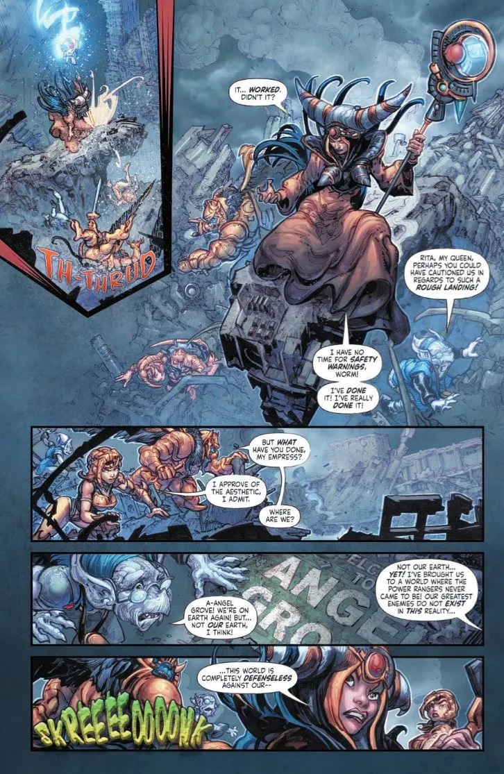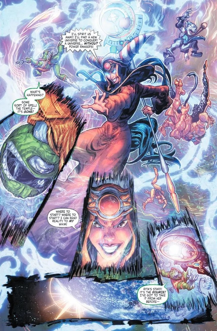 ‘When Rita Repulsa uses an ancient artifact to transport herself to a universe without Power Rangers, she finds herself in a world with aliens, kaiju, and… Godzilla! Hoping to annihilate this new foe, Rita hurls her own terrible creatures into battle. But she never expects that the Rangers have followed her to this alternate reality, pitting the Dinozords themselves head-to-head with the King of the Monsters!’